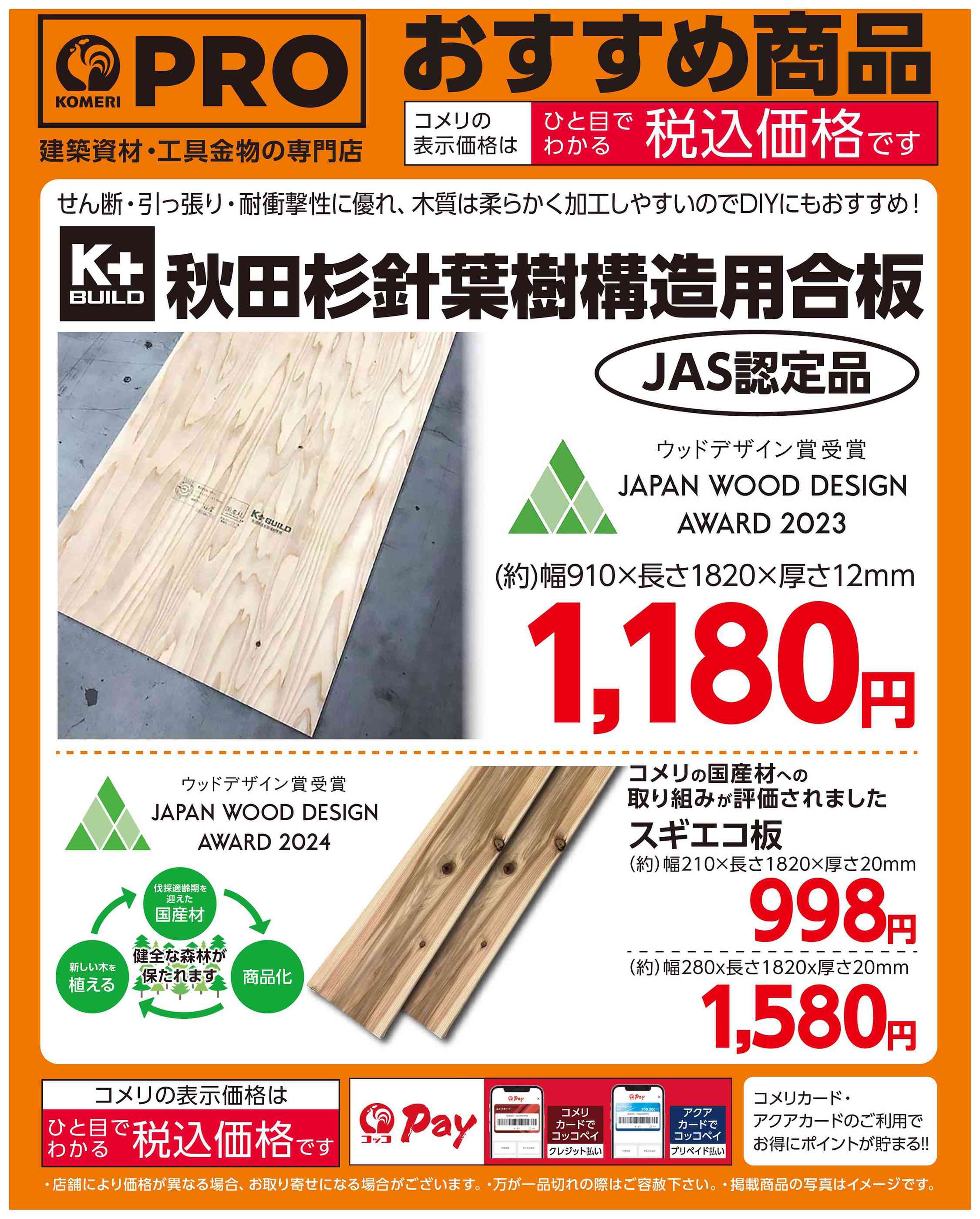 - 2026年3月21〜31日までコメリおすすめ 合板・スギエコ板new (1枚)