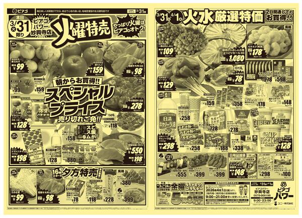 ※「店舗の掲載内容について」チラシガイドに掲載している情報は、独自に調査した内容及びユーザーから頂いた情報を掲載しています。お気づきの点がございましたら「お問い合わせ」よりご連絡ください。また店舗の営業状況、商品に関するお問い合わせは直接店舗事業者にご確認ください。