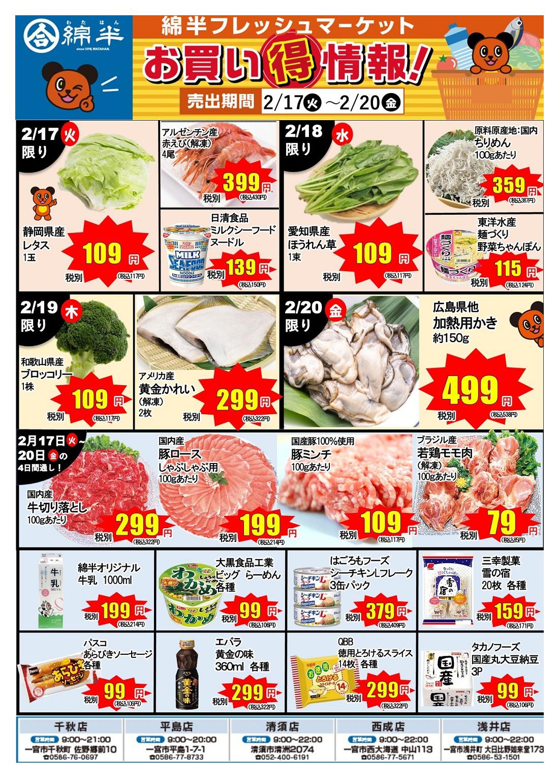 ※「店舗の掲載内容について」チラシガイドに掲載している情報は、独自に調査した内容及びユーザーから頂いた情報を掲載しています。お気づきの点がございましたら「お問い合わせ」よりご連絡ください。また店舗の営業状況、商品に関するお問い合わせは直接店舗事業者にご確認ください。