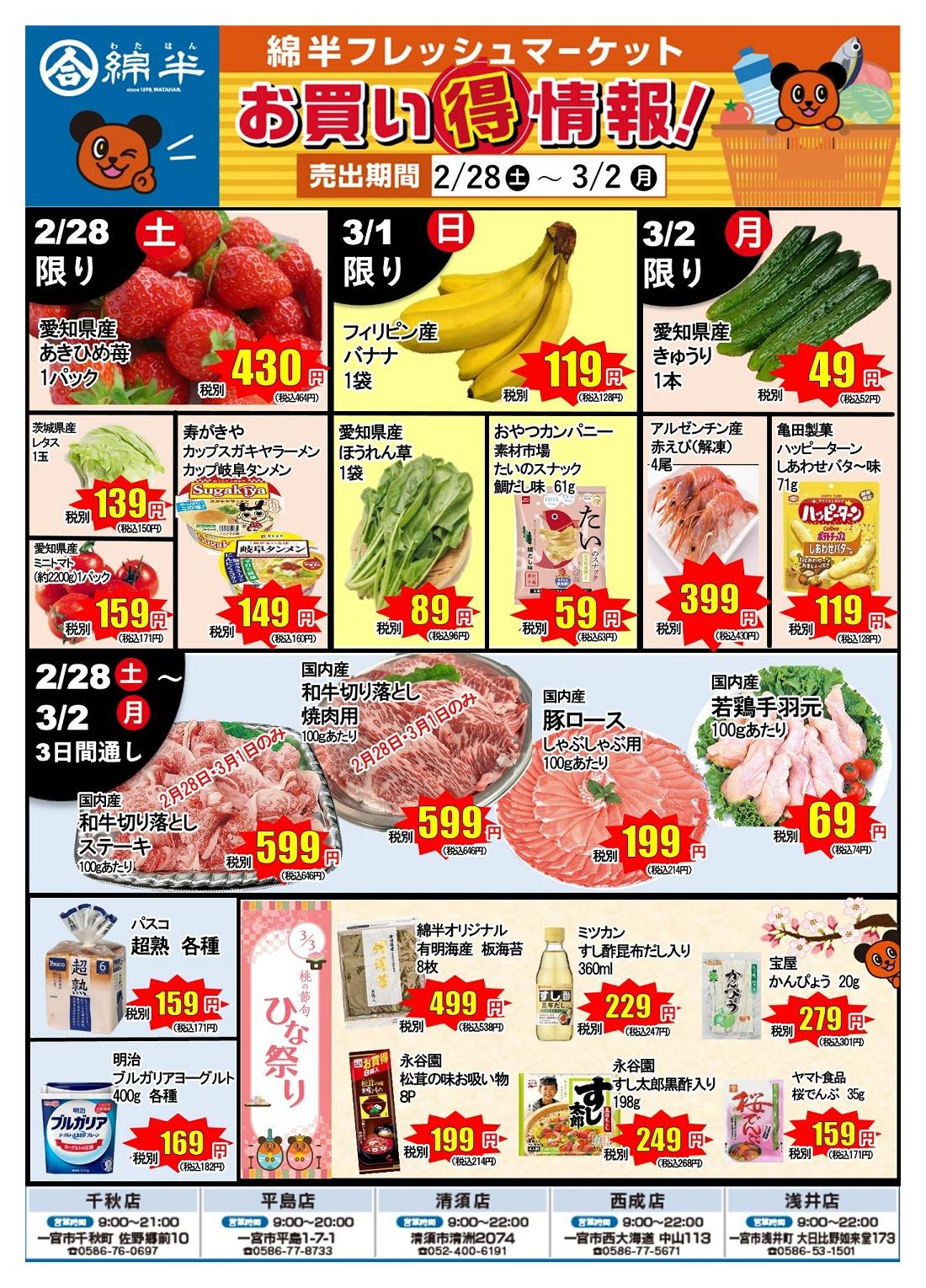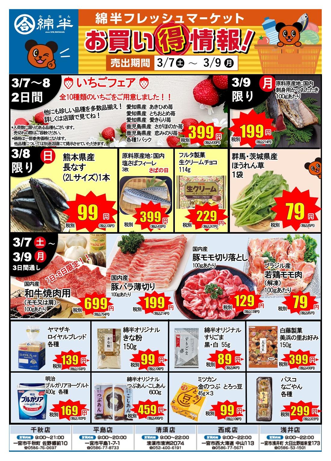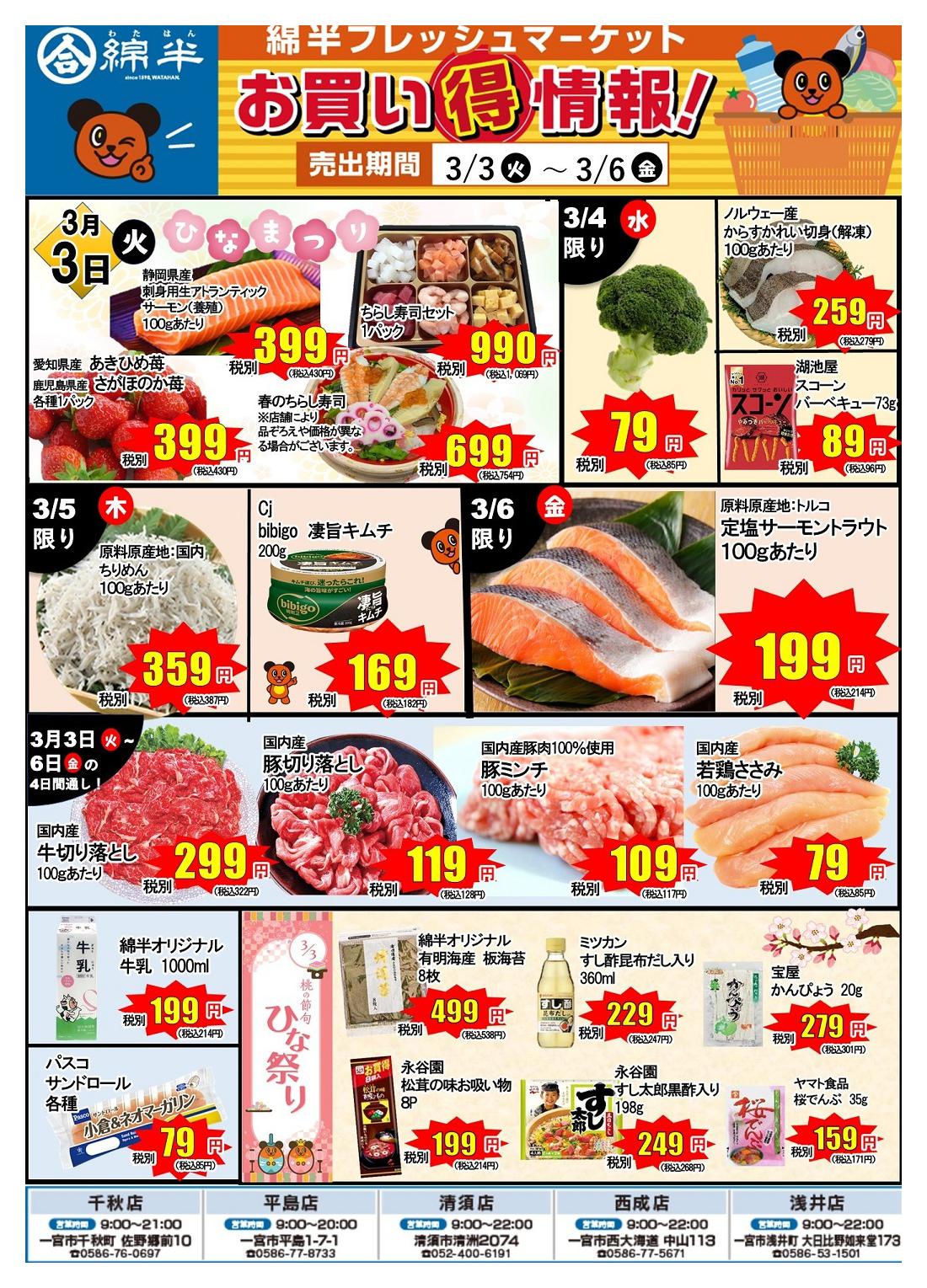 綿半フレッシュマーケット西成店今週のチラシ(2026年3月2日〜3月8日)