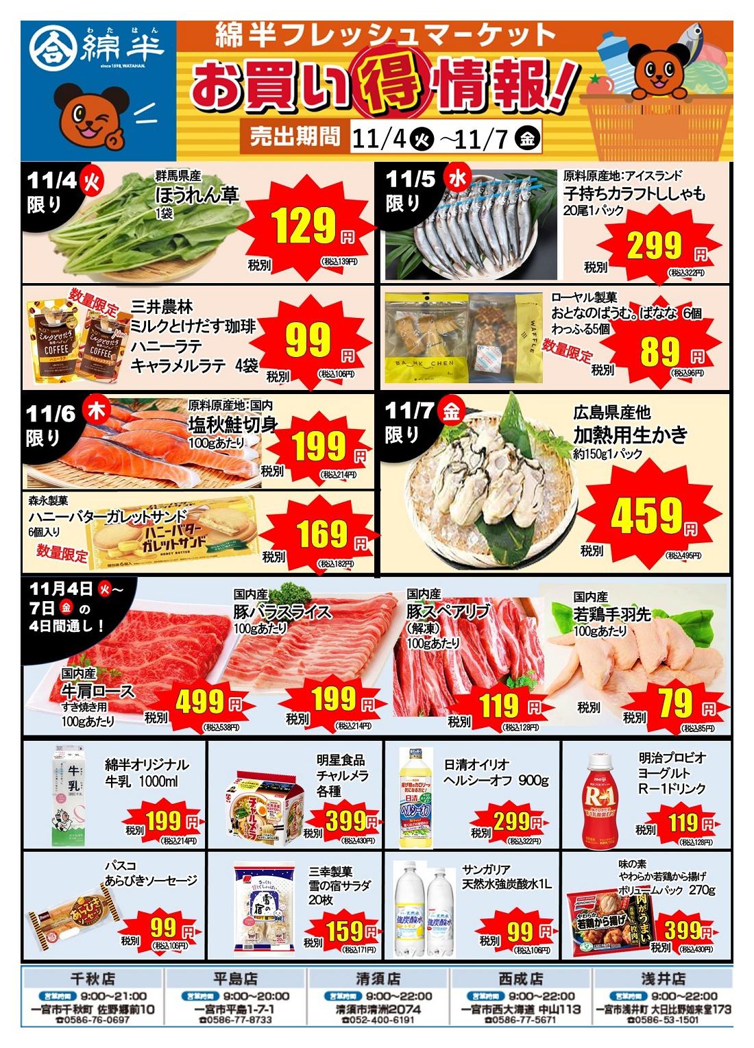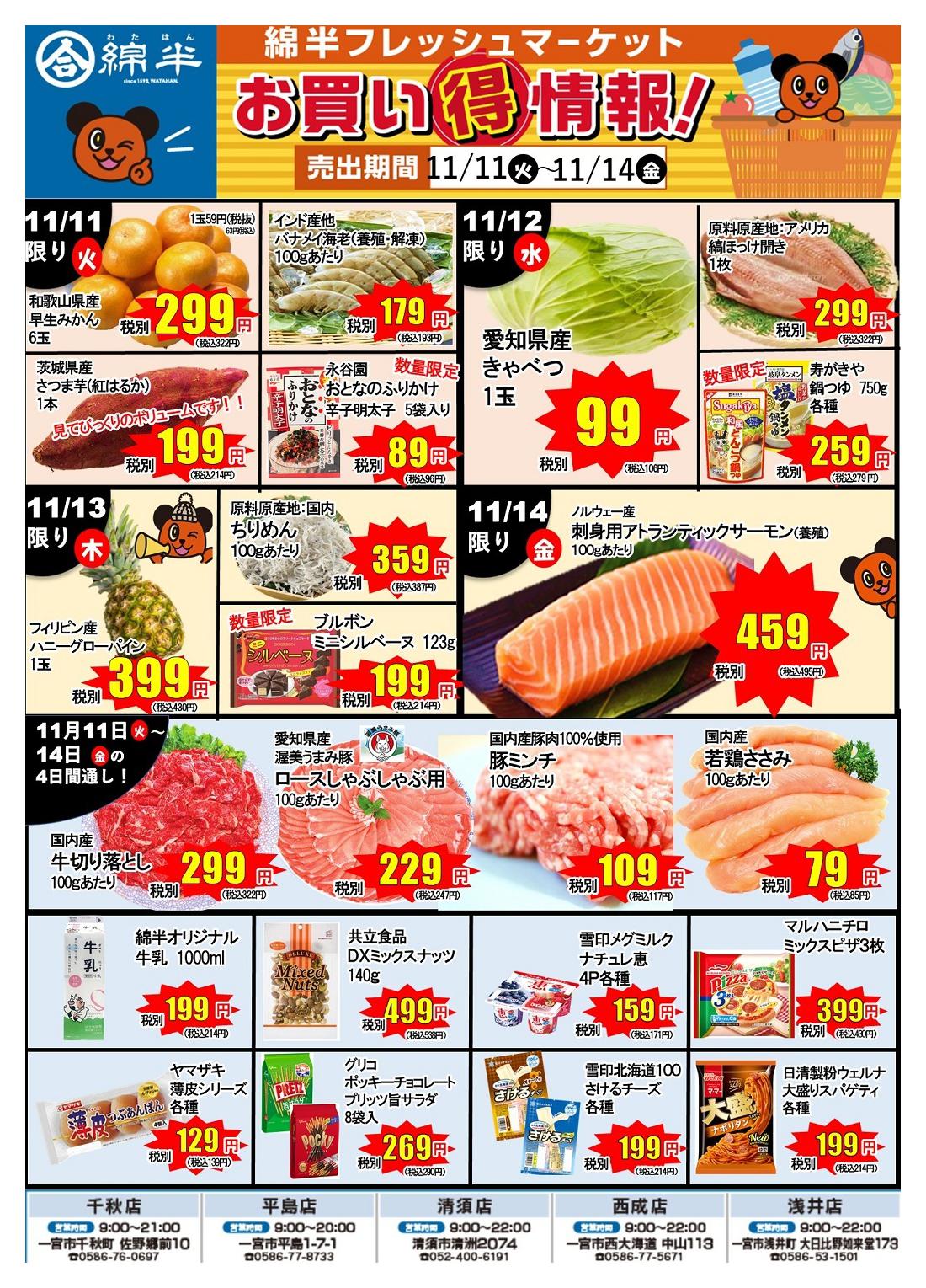 綿半フレッシュマーケット浅井店今週のチラシ(2025年11月17日〜11月23日)