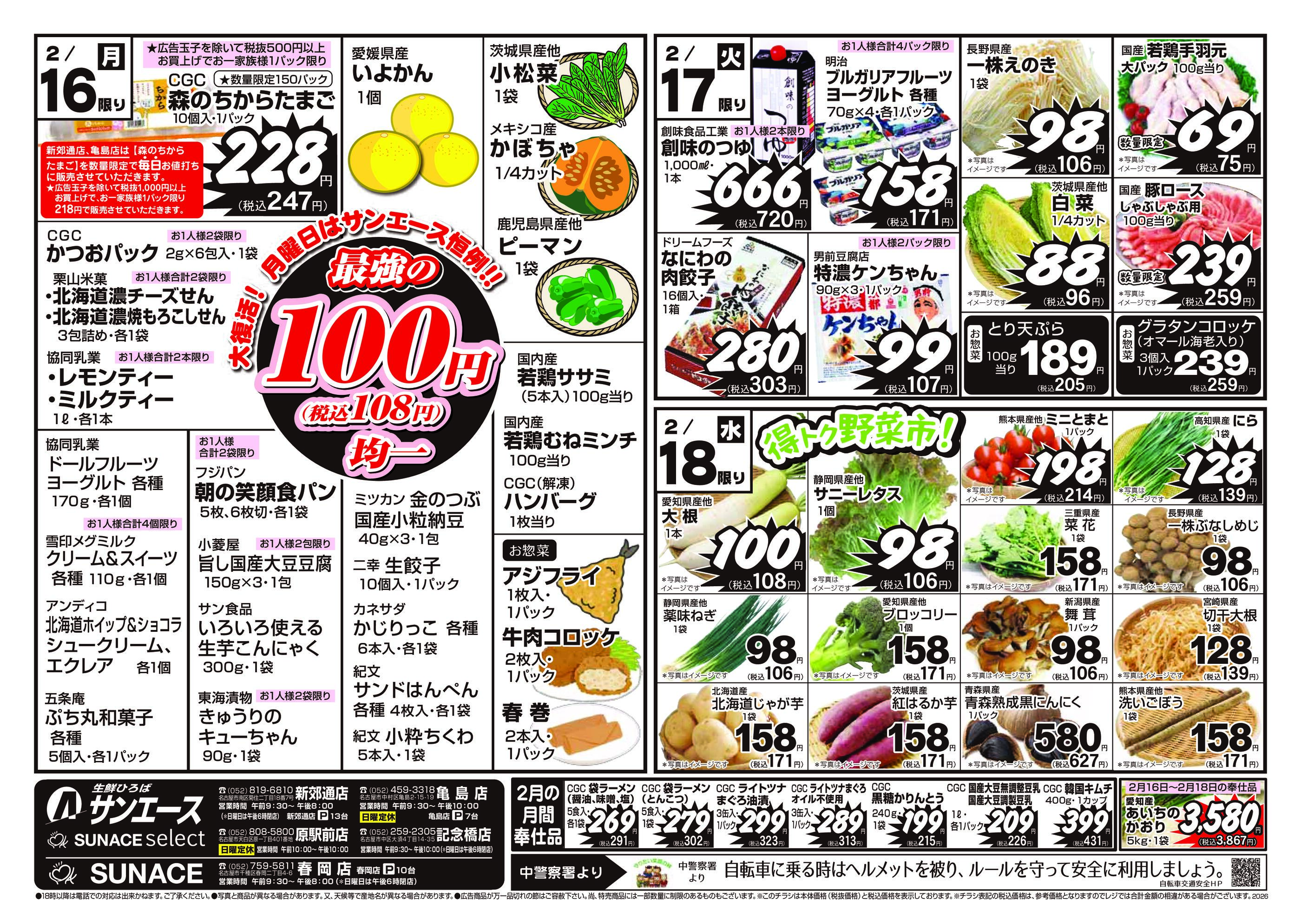 サンエース記念橋店今週のチラシ(2026年2月16日〜2月22日)
