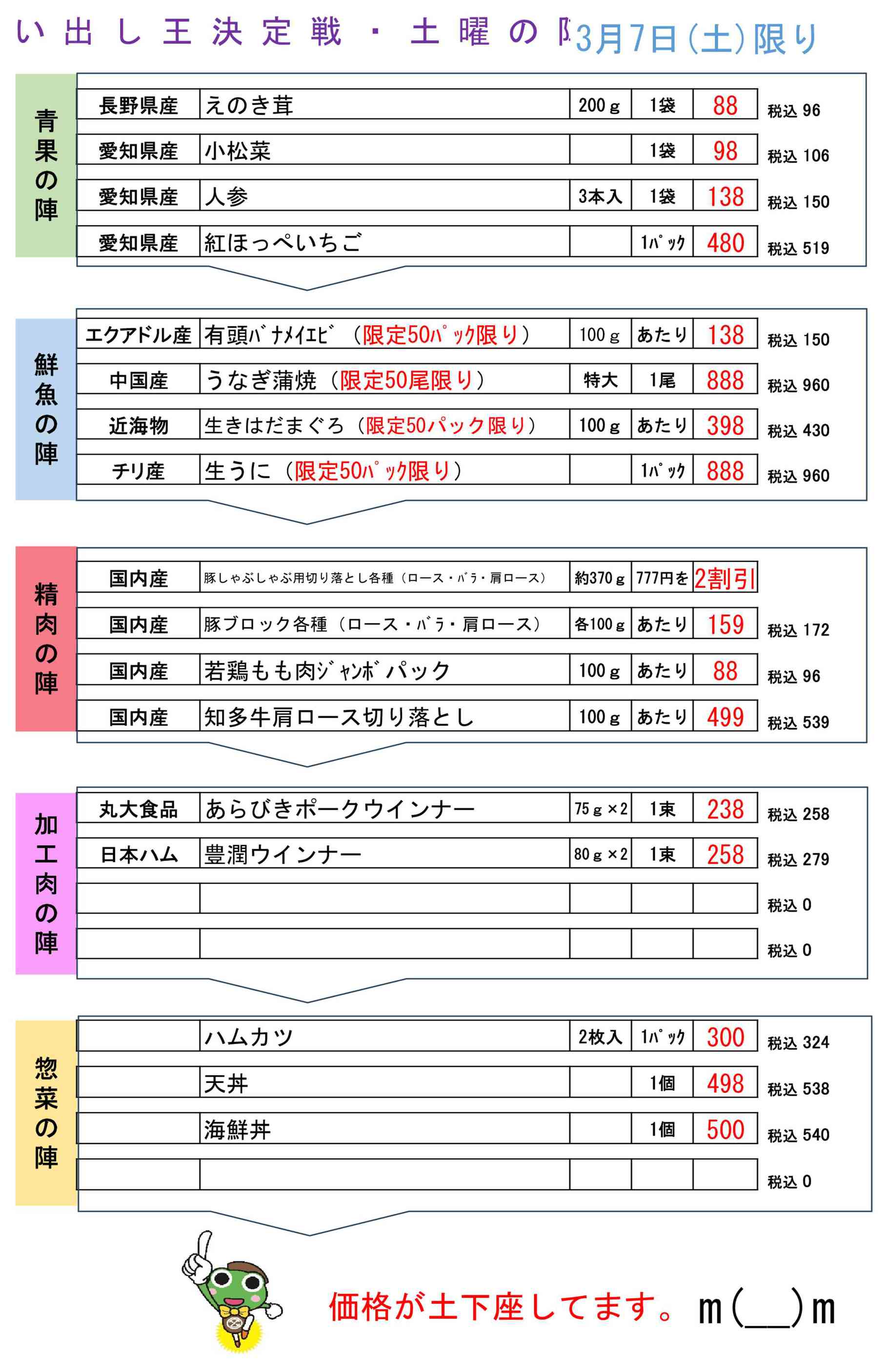 生鮮食品館サノヤ2026-03-05更新
