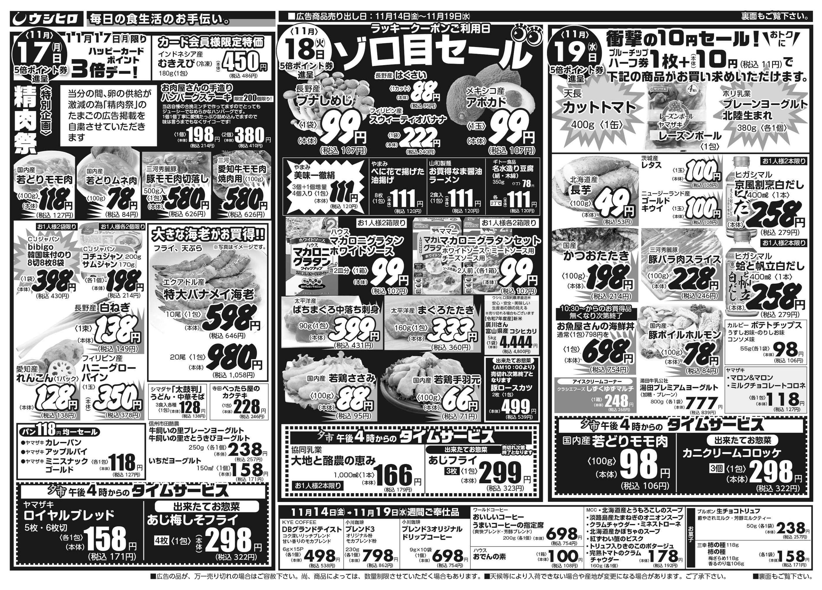 ウシヒロ八熊店今週のチラシ(2025年11月17日〜11月23日)