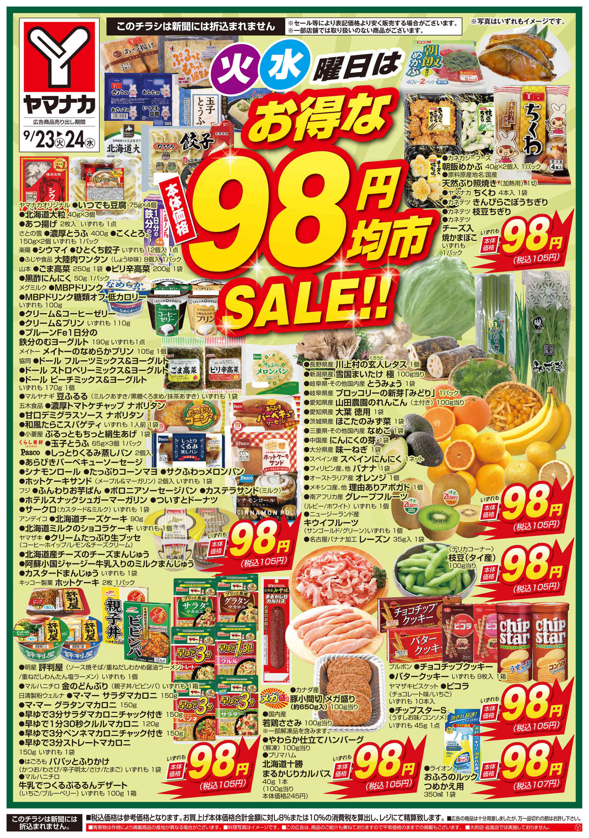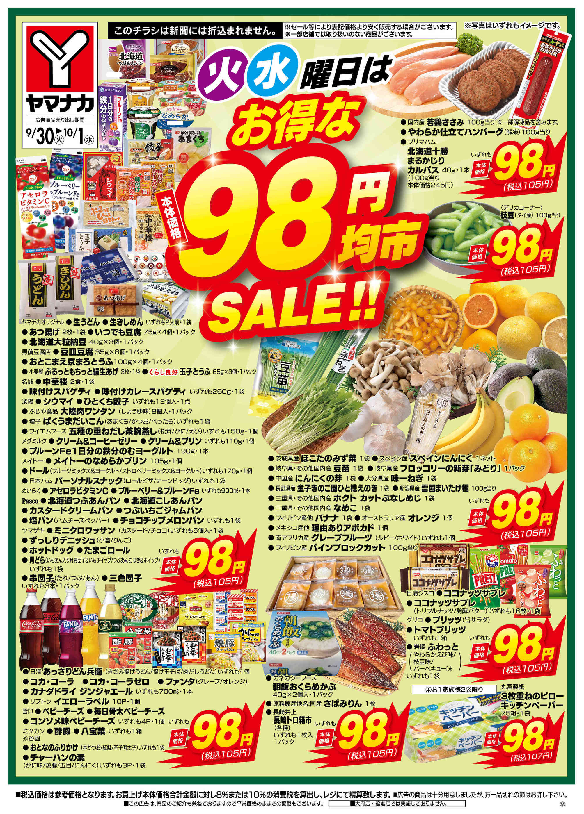 - 2025年9月30日〜10月1日まで火水曜日はお得な98円均市SALE (1枚)