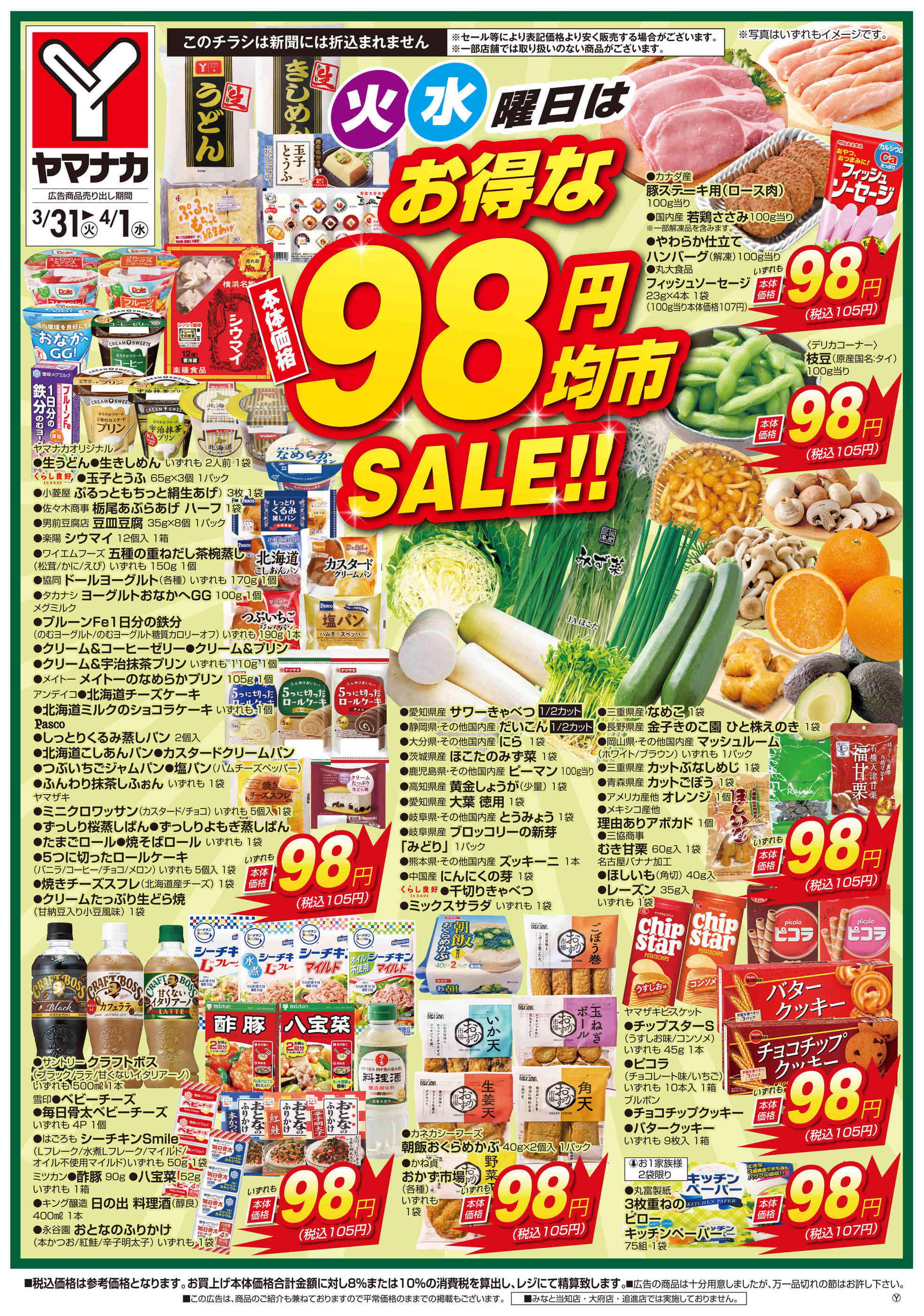 - 2026年3月31日〜4月1日まで火水曜日はお得な98円均市SALE (1枚)