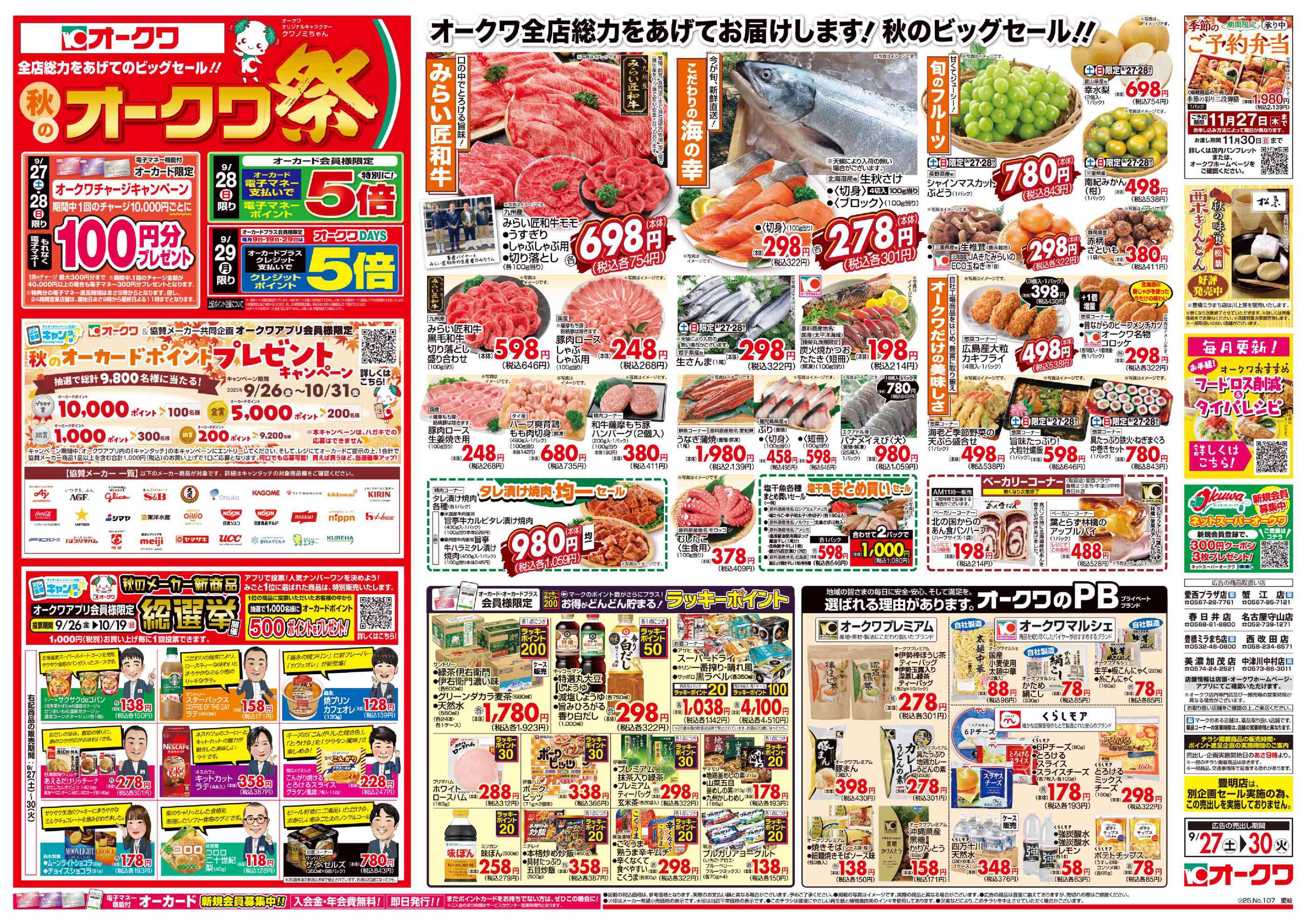オークワ名古屋守山店今週のチラシ(2025年9月29日〜10月5日)