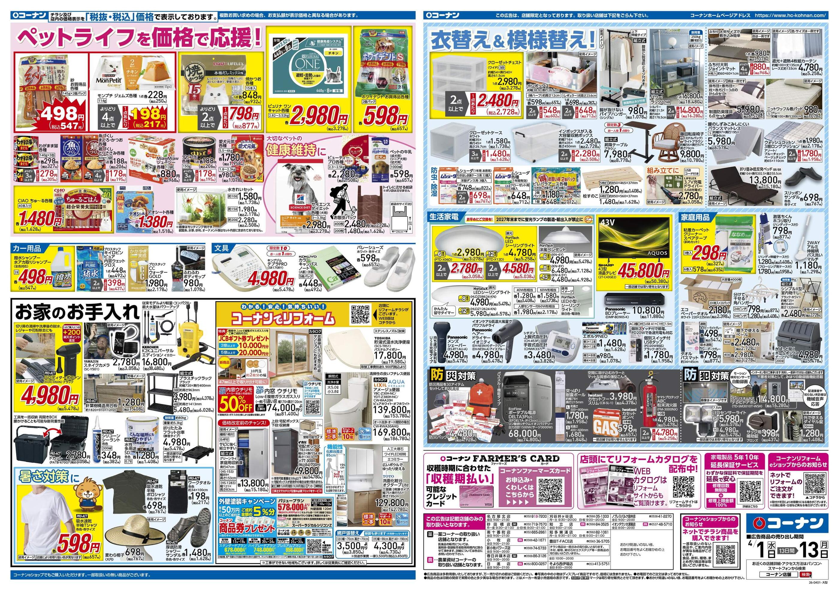 ホームセンターコーナン南十番町店今週のチラシ(2026年3月30日〜4月5日)