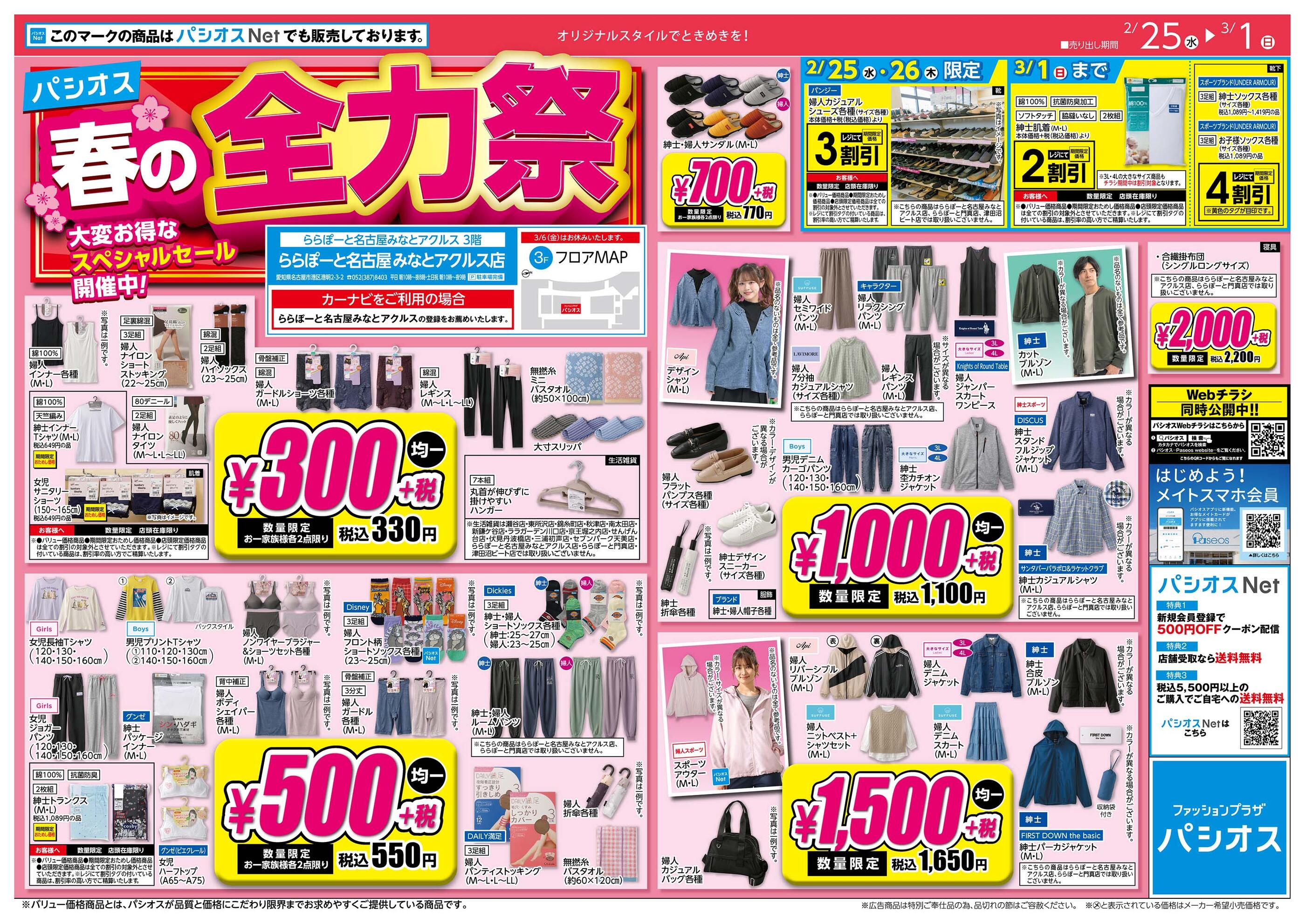 パシオスららぽーと名古屋みなとアクルス店今週のチラシ(2026年3月2日〜3月8日)