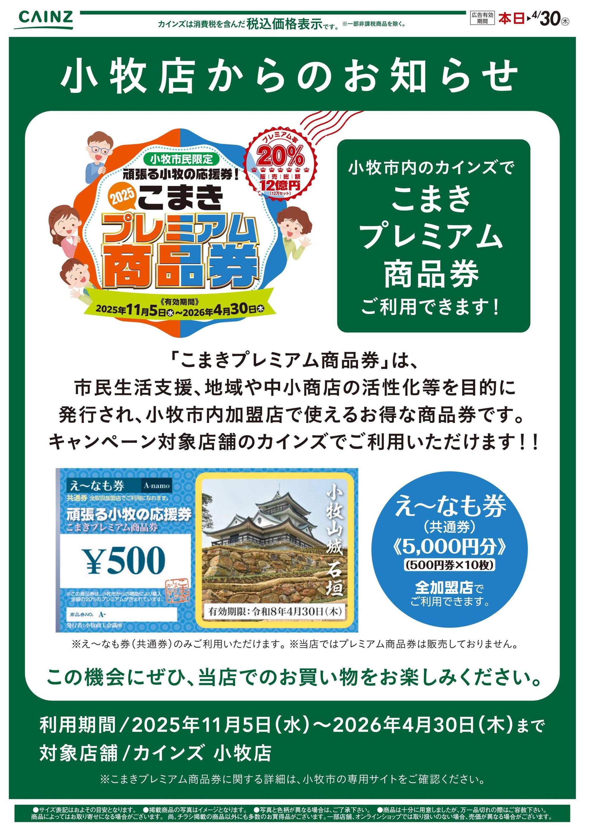 カインズ小牧店今週のチラシ(2026年3月30日〜4月5日)