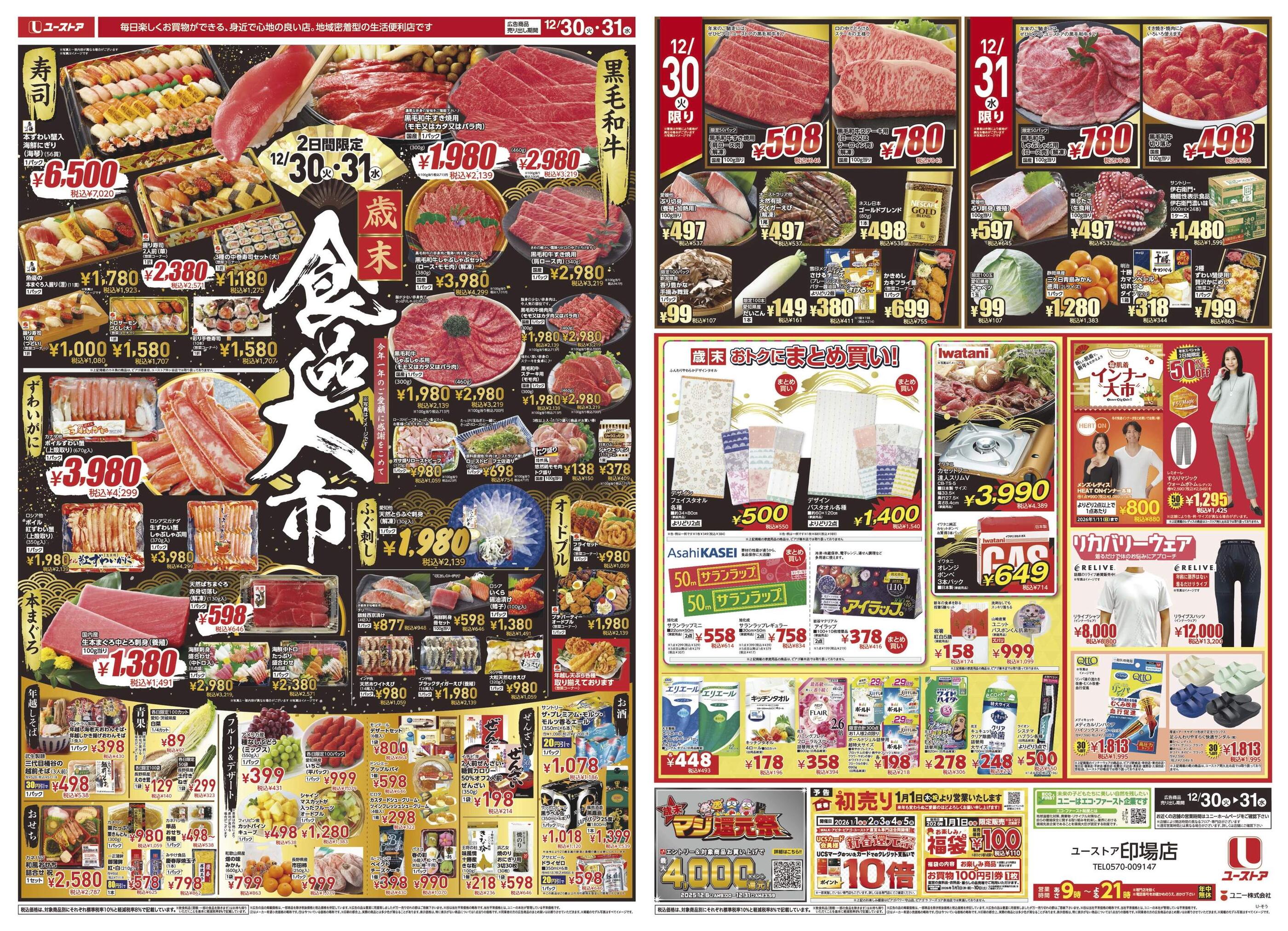 ユーストア印場店今週のチラシ(2025年12月29日〜1月4日)