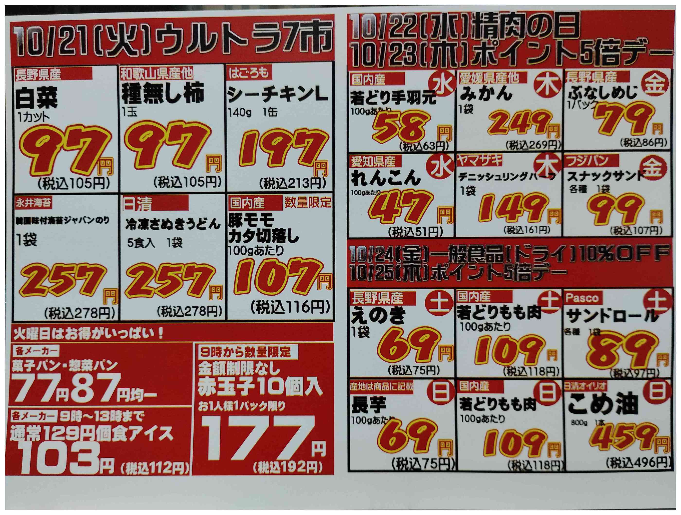 ※「店舗の掲載内容について」チラシガイドに掲載している情報は、独自に調査した内容及びユーザーから頂いた情報を掲載しています。お気づきの点がございましたら「お問い合わせ」よりご連絡ください。また店舗の営業状況、商品に関するお問い合わせは直接店舗事業者にご確認ください。