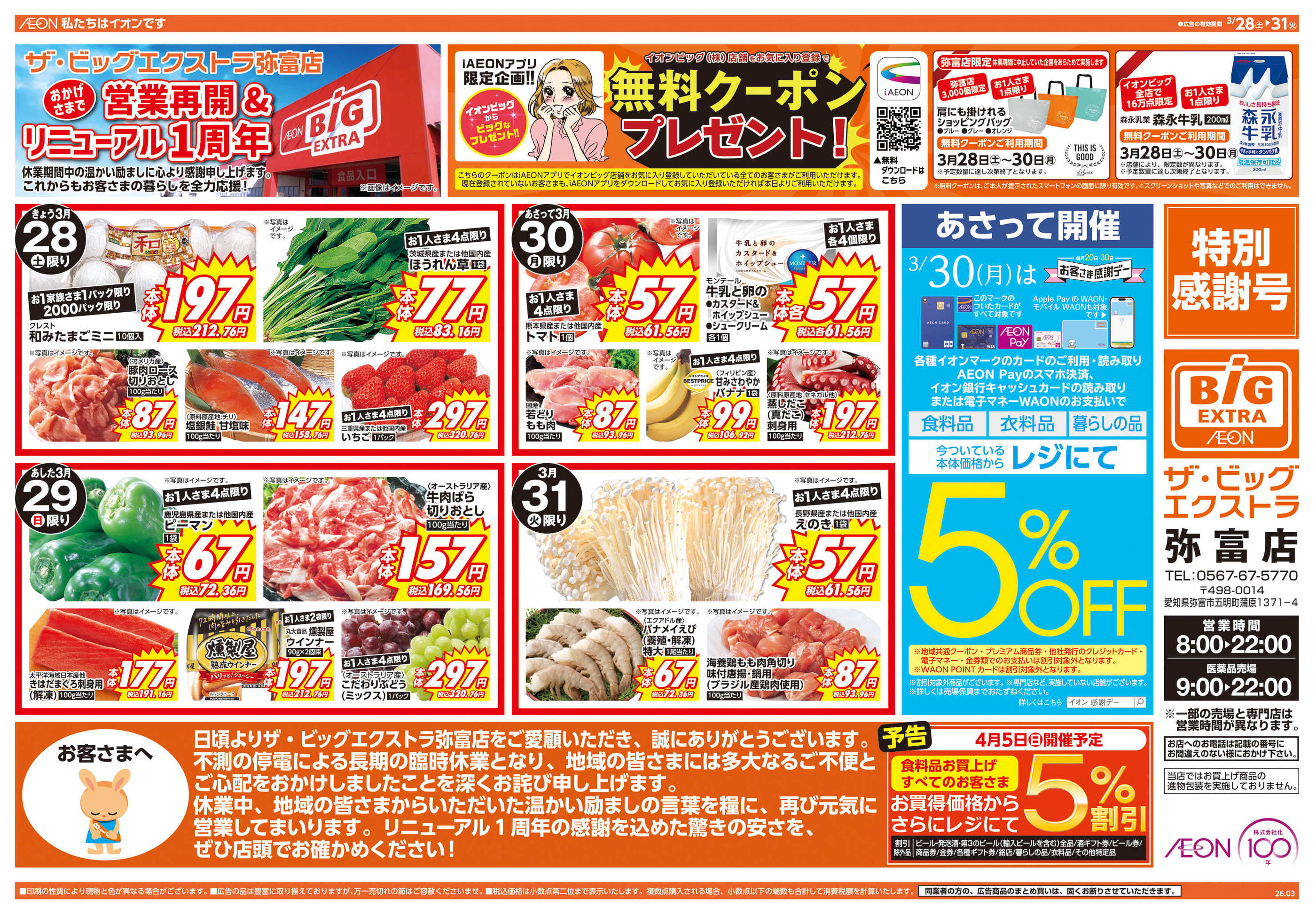 ザ・ビッグエクストラ弥富店今週のチラシ(2026年3月30日〜4月5日)