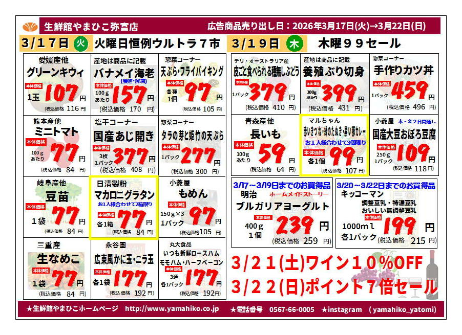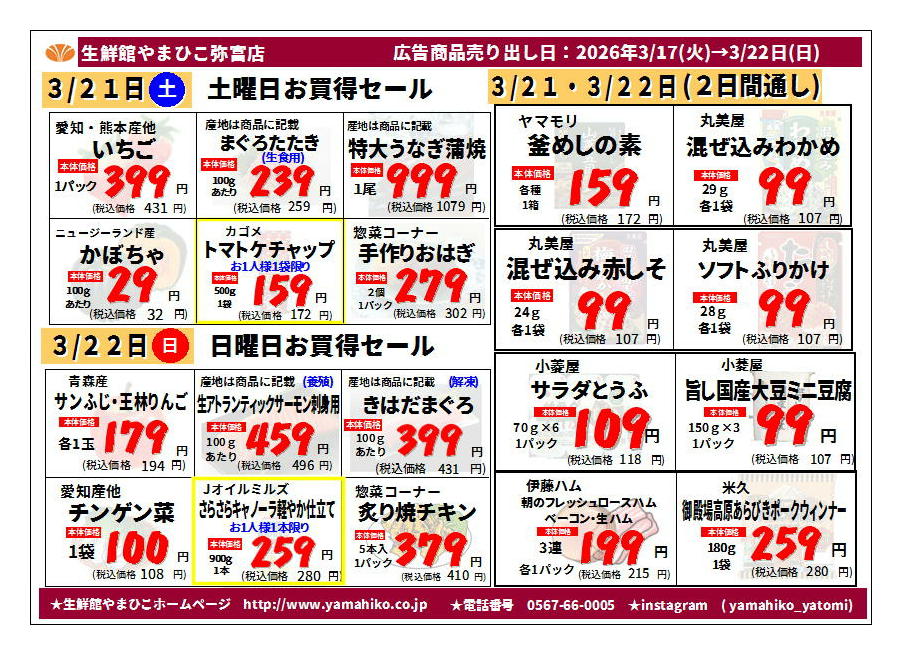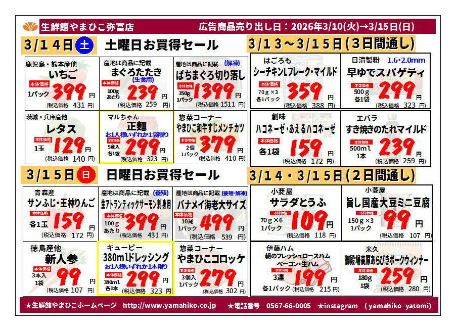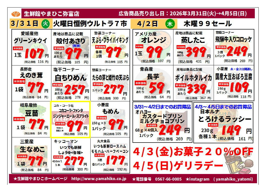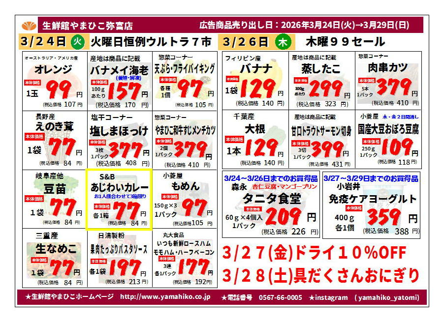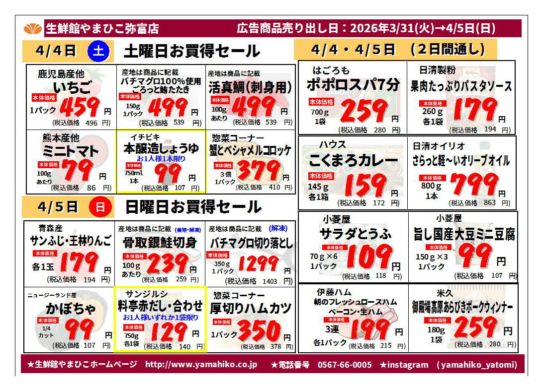 生鮮館やまひこ弥富店今週のチラシ(2026年3月30日〜4月5日)