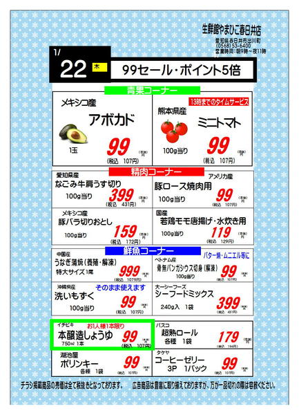 ※「店舗の掲載内容について」チラシガイドに掲載している情報は、独自に調査した内容及びユーザーから頂いた情報を掲載しています。お気づきの点がございましたら「お問い合わせ」よりご連絡ください。また店舗の営業状況、商品に関するお問い合わせは直接店舗事業者にご確認ください。