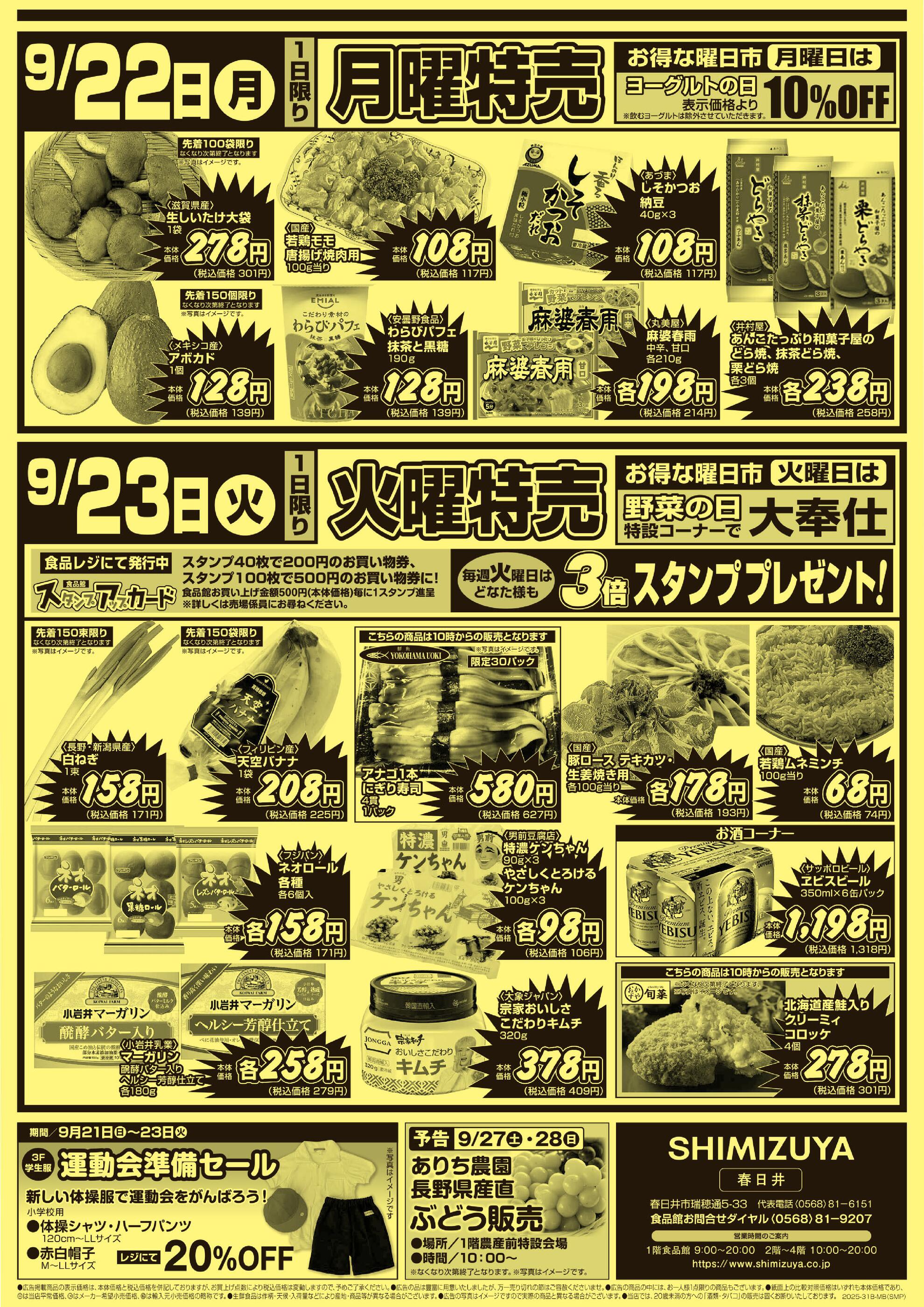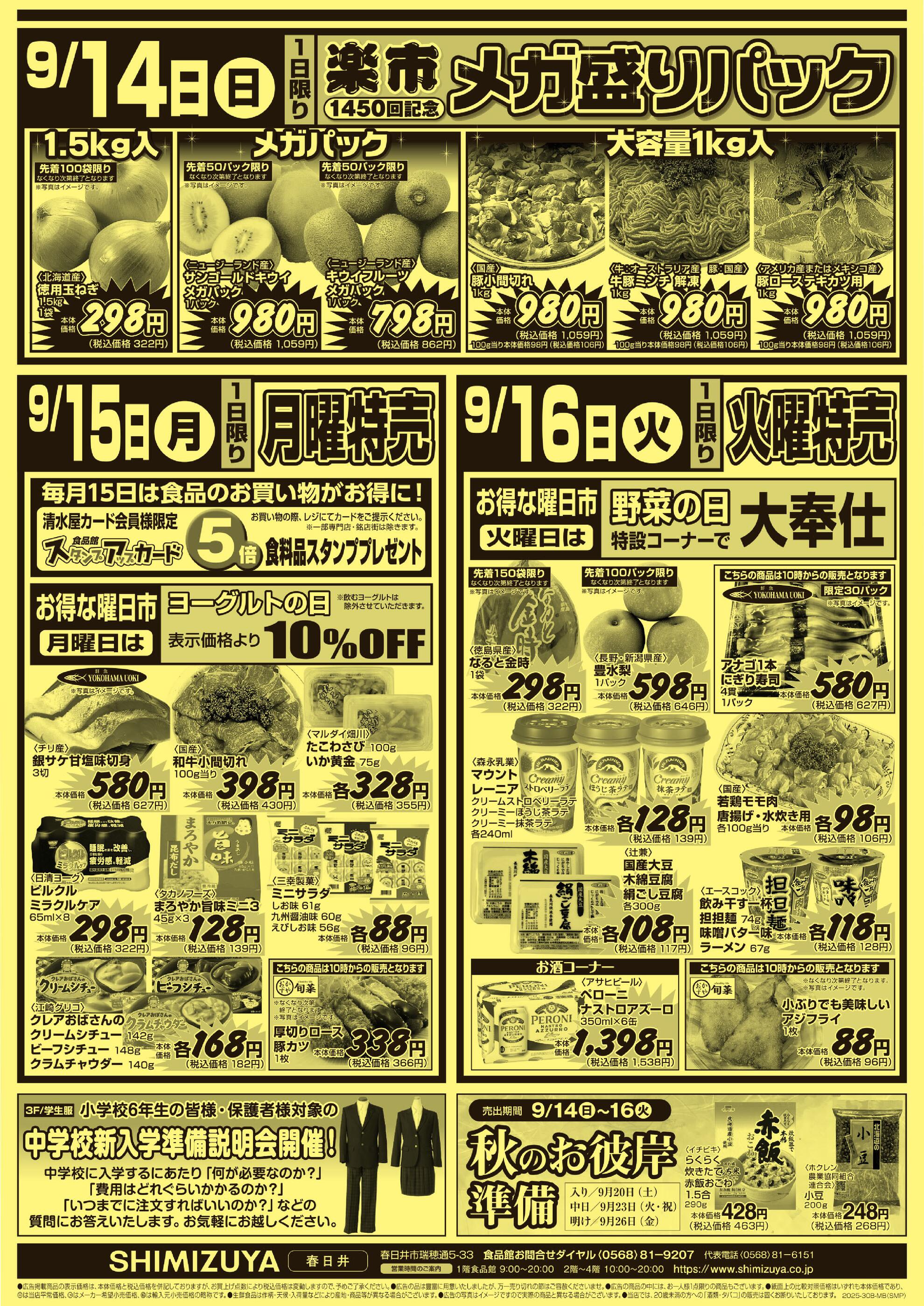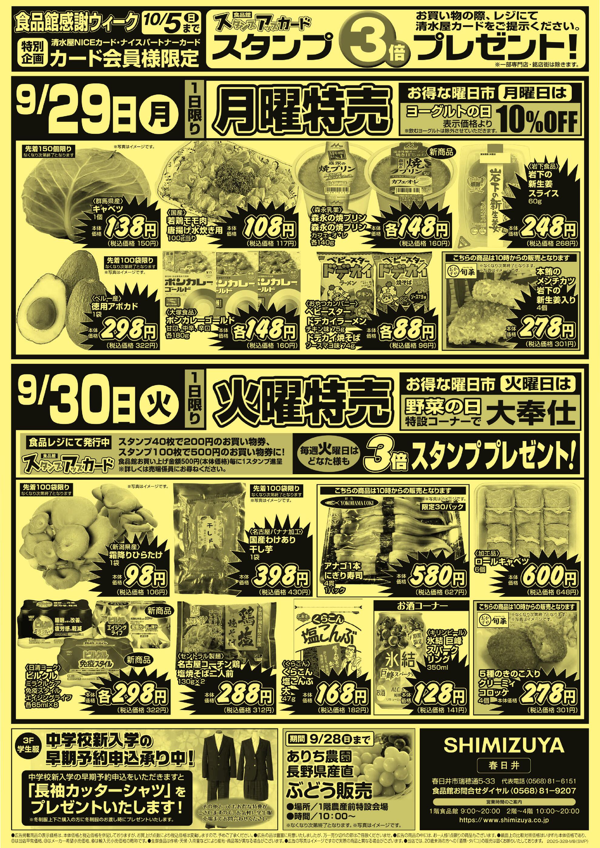 清水屋春日井店今週のチラシ(2025年9月29日〜10月5日)
