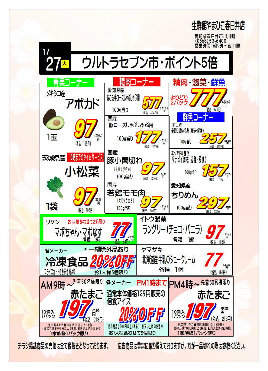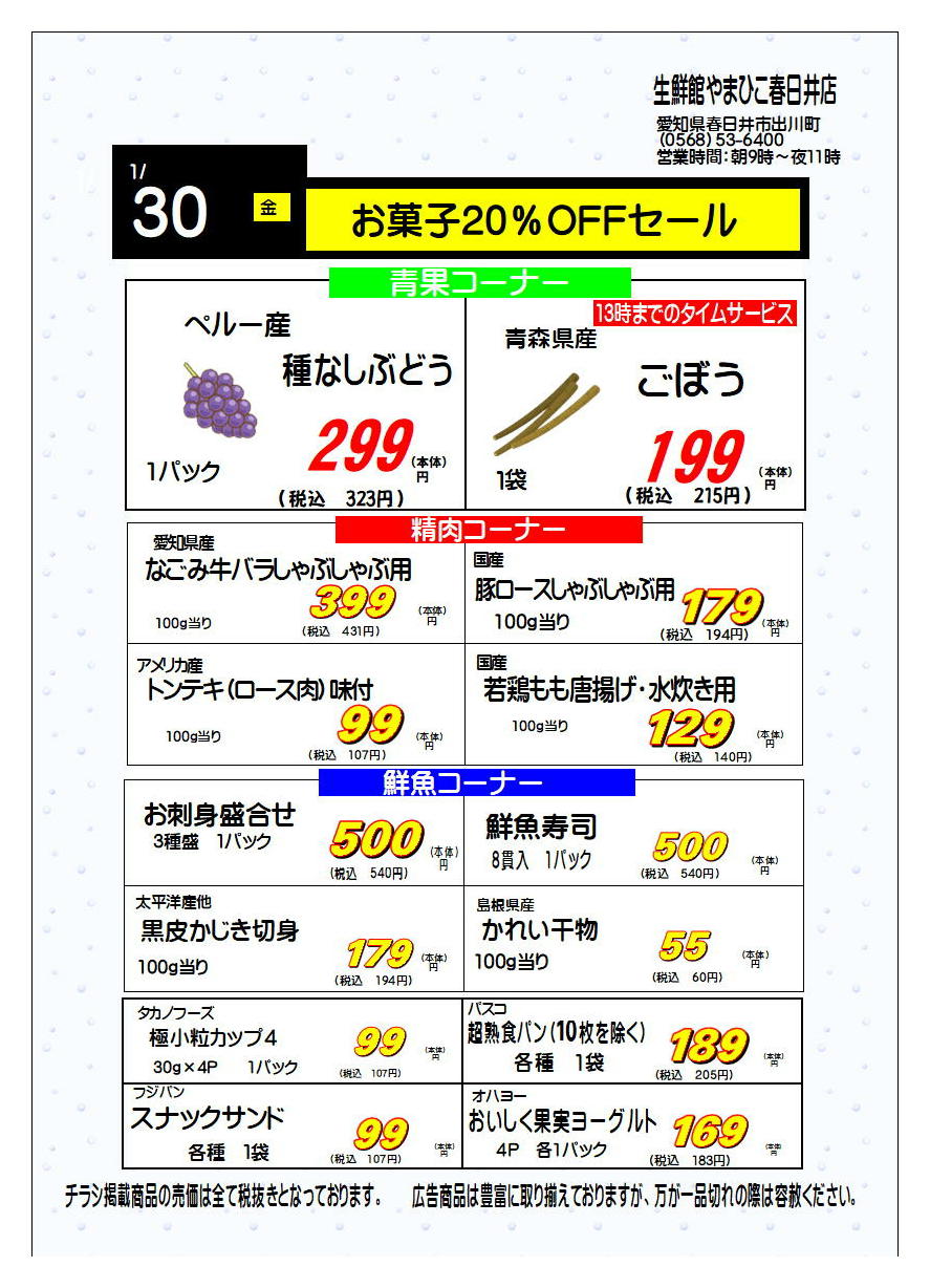 生鮮館やまひこ春日井店今週のチラシ(2026年1月26日〜2月1日)