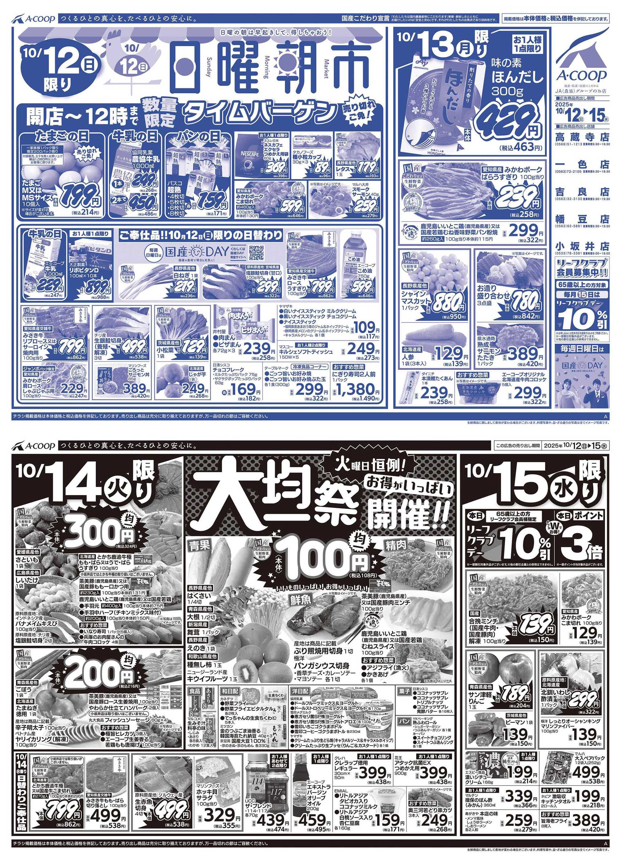 エーコープ高蔵寺店今週のチラシ(2025年10月13日〜10月19日)