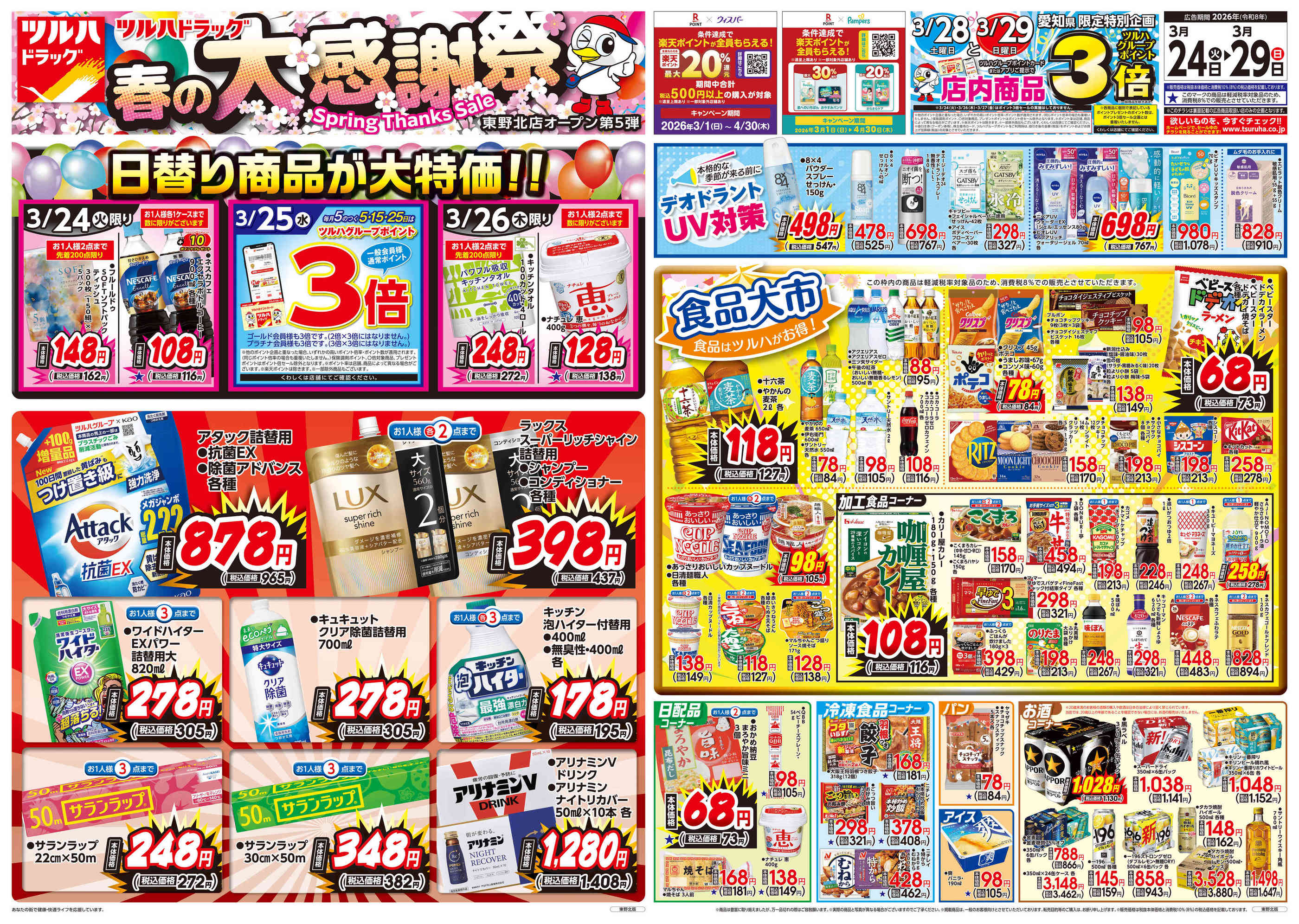 ツルハドラッグ東野北店今週のチラシ(2026年3月30日〜4月5日)