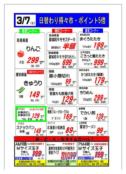 ※「店舗の掲載内容について」チラシガイドに掲載している情報は、独自に調査した内容及びユーザーから頂いた情報を掲載しています。お気づきの点がございましたら「お問い合わせ」よりご連絡ください。また店舗の営業状況、商品に関するお問い合わせは直接店舗事業者にご確認ください。