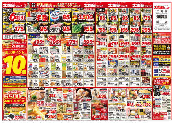 ※「店舗の掲載内容について」チラシガイドに掲載している情報は、独自に調査した内容及びユーザーから頂いた情報を掲載しています。お気づきの点がございましたら「お問い合わせ」よりご連絡ください。また店舗の営業状況、商品に関するお問い合わせは直接店舗事業者にご確認ください。
