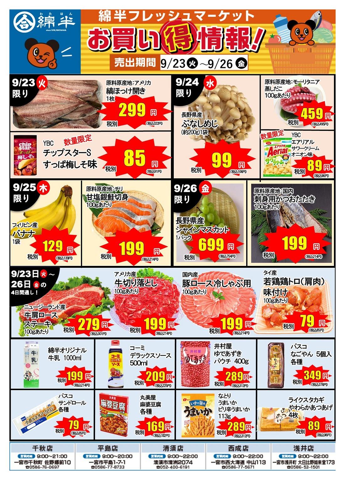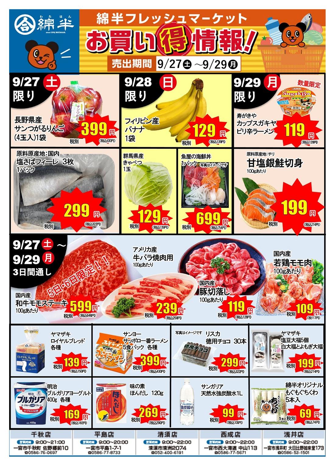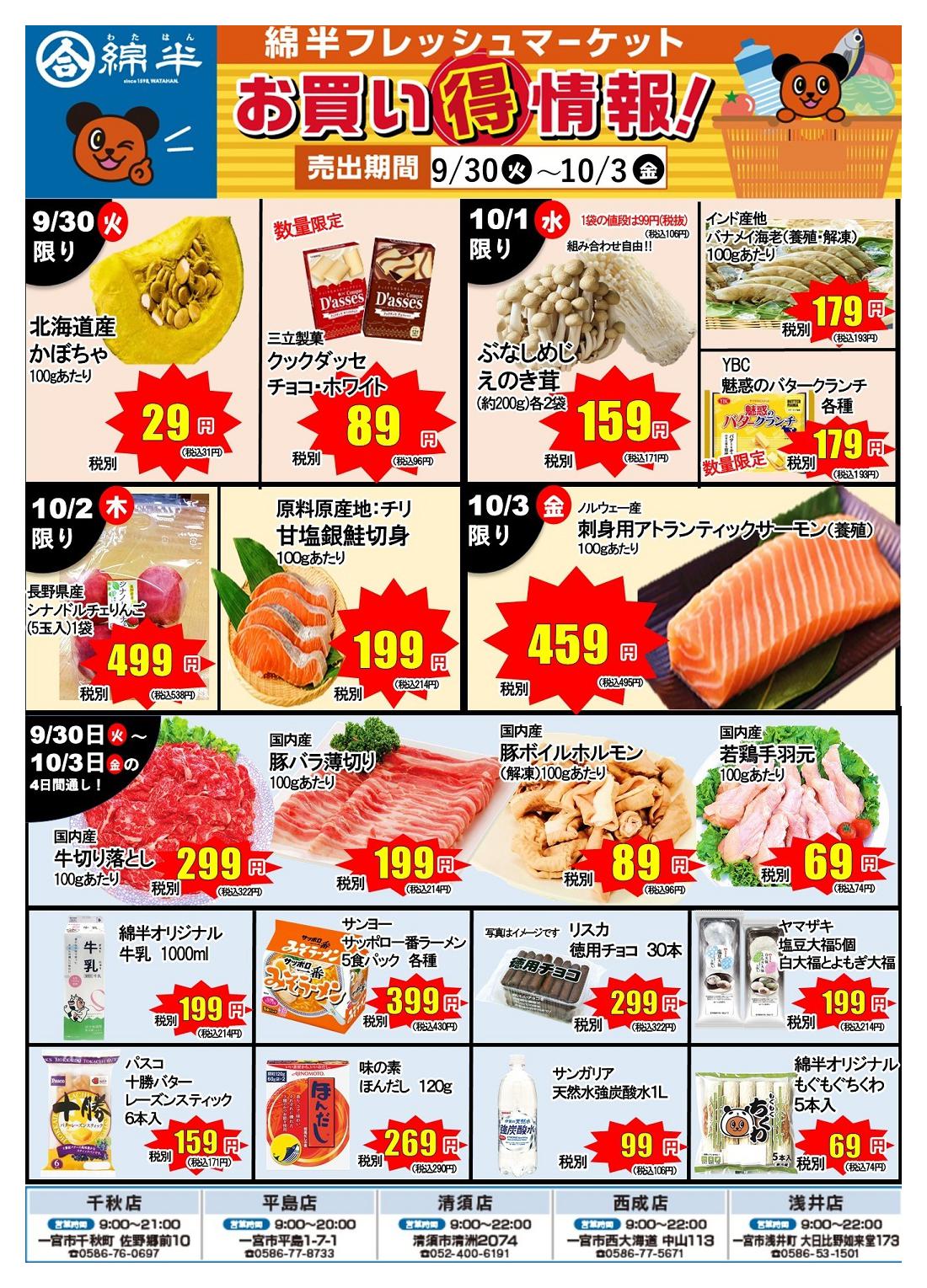 綿半フレッシュマーケット清須店今週のチラシ(2025年9月29日〜10月5日)