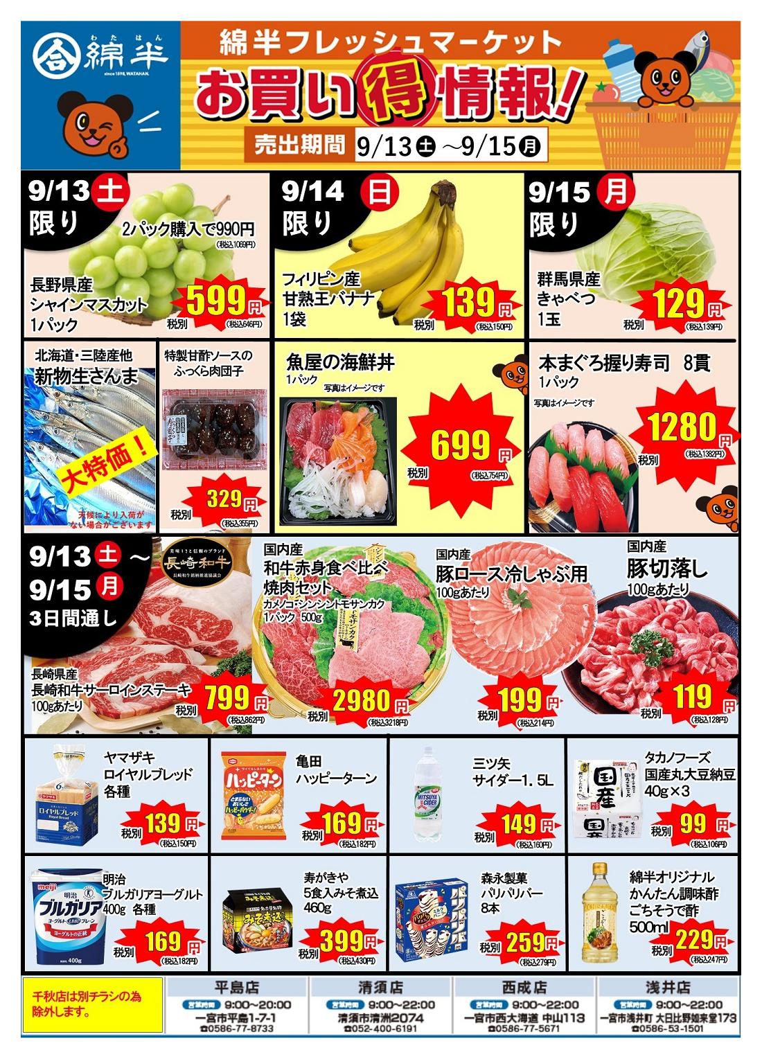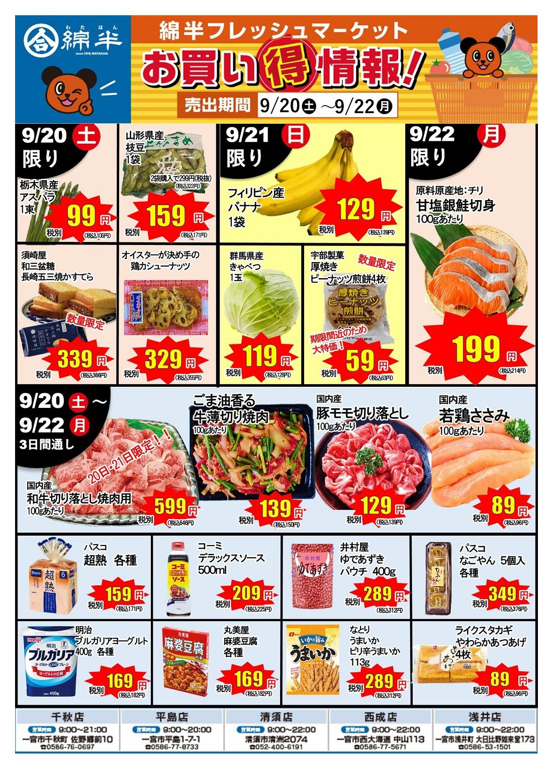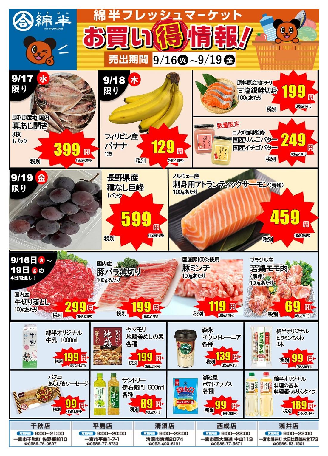 綿半フレッシュマーケット清須店今週のチラシ(2025年9月29日〜10月5日)