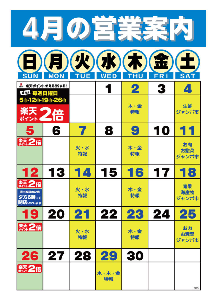特売やセール情報など最新のチラシを掲載中。(2種類、5枚のチラシを掲載しています)