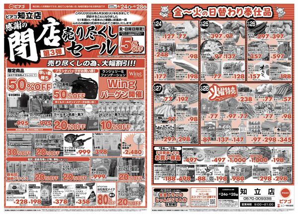 ※「店舗の掲載内容について」チラシガイドに掲載している情報は、独自に調査した内容及びユーザーから頂いた情報を掲載しています。お気づきの点がございましたら「お問い合わせ」よりご連絡ください。また店舗の営業状況、商品に関するお問い合わせは直接店舗事業者にご確認ください。