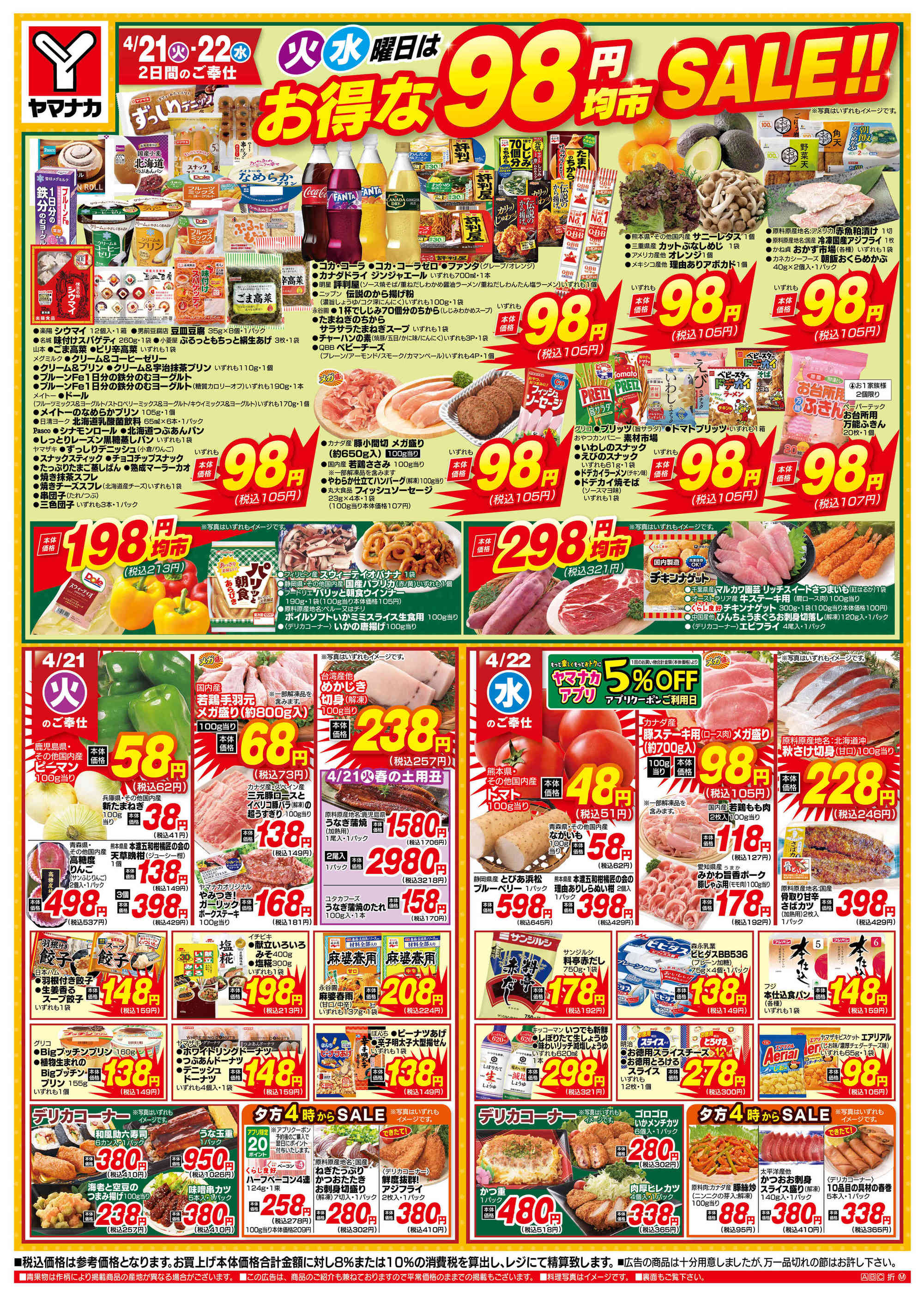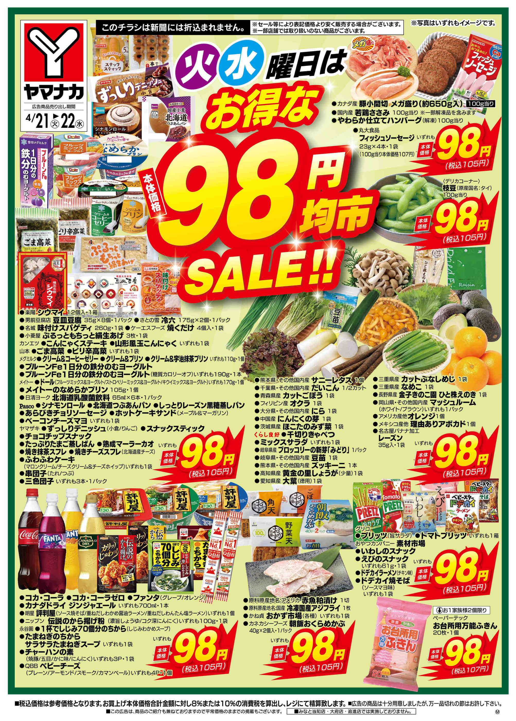 - 2026年4月21〜22日まで火水曜日はお得な98円均市SALEnew (2枚)