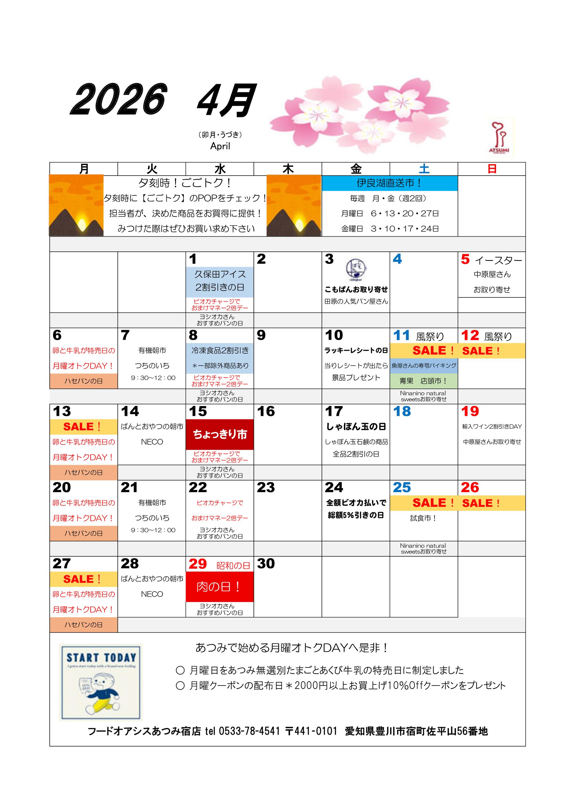 フードオアシスあつみ 宿店今週のチラシ(2026年3月30日〜4月5日)