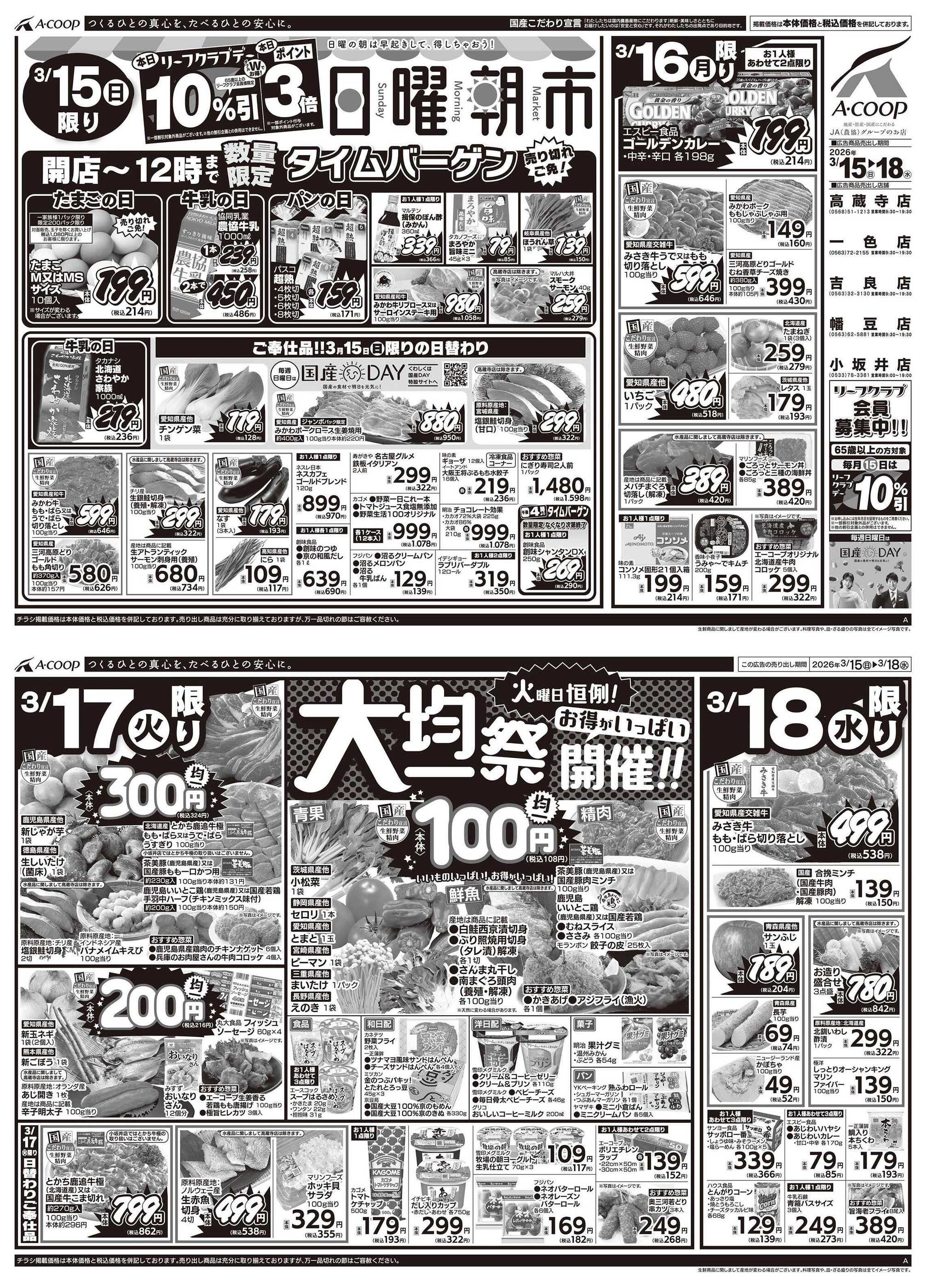 エーコープ小坂井店今週のチラシ(2026年3月16日〜3月22日)