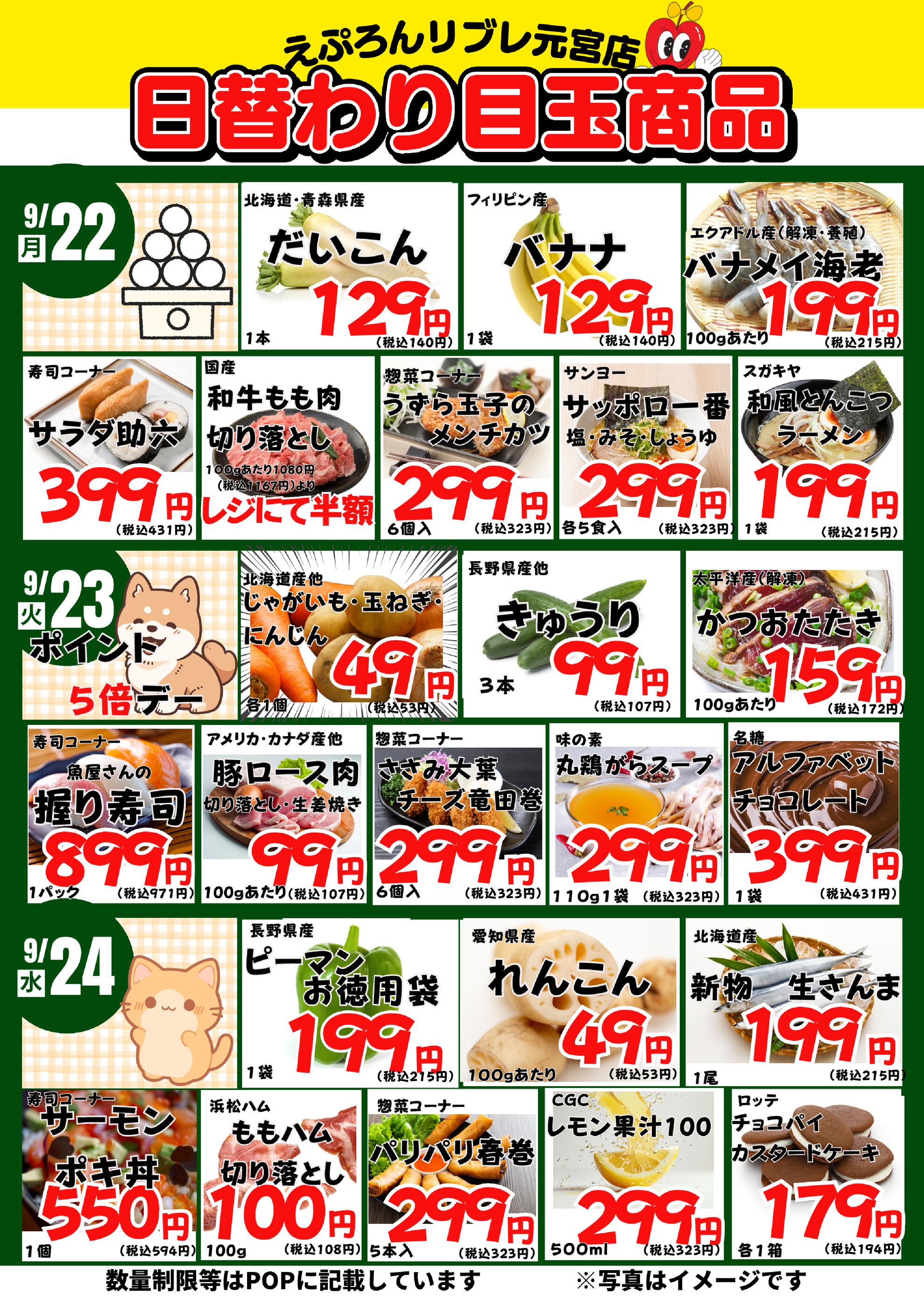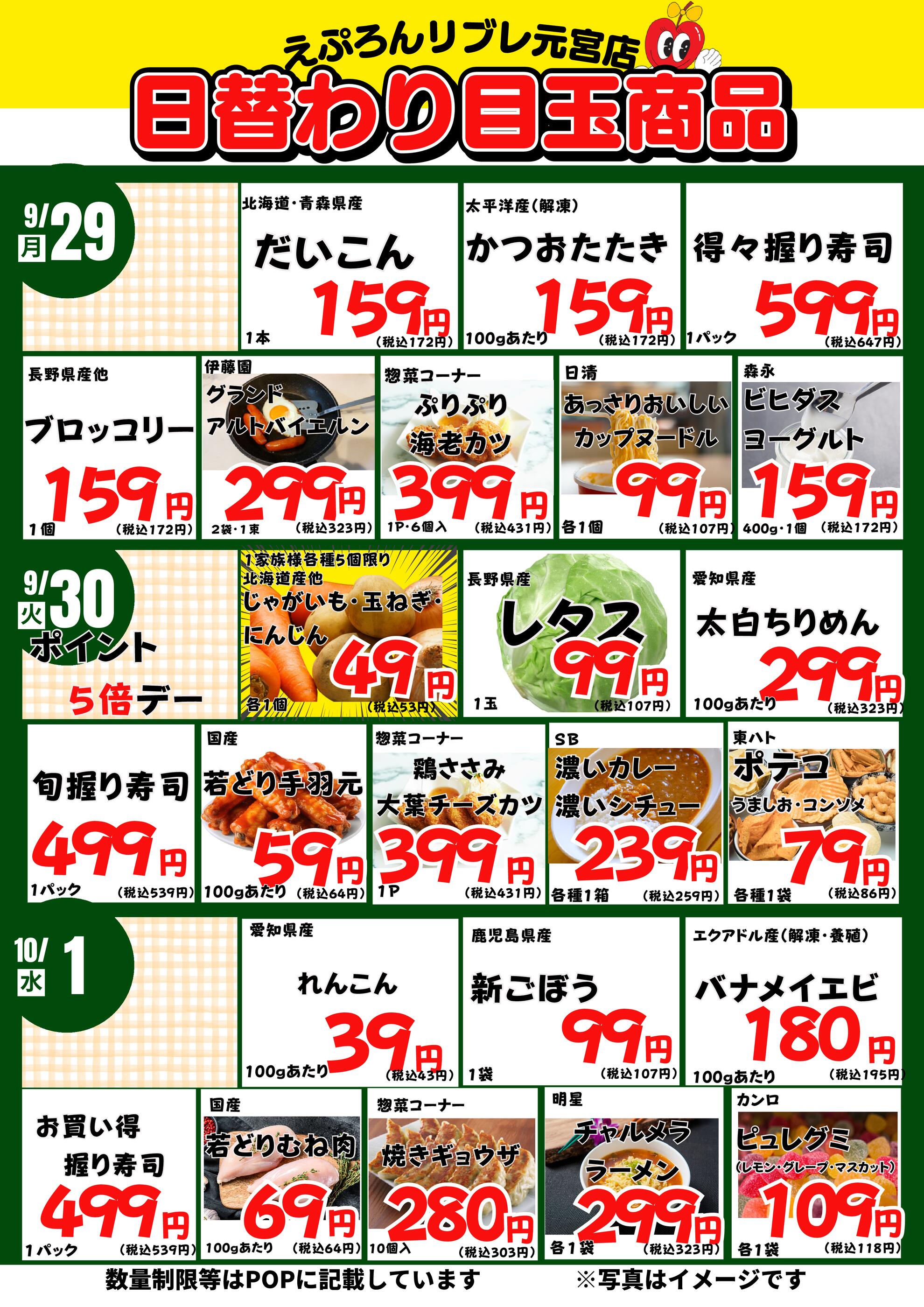 えぷろん生鮮館リブレ元宮店今週のチラシ(2025年9月29日〜10月5日)