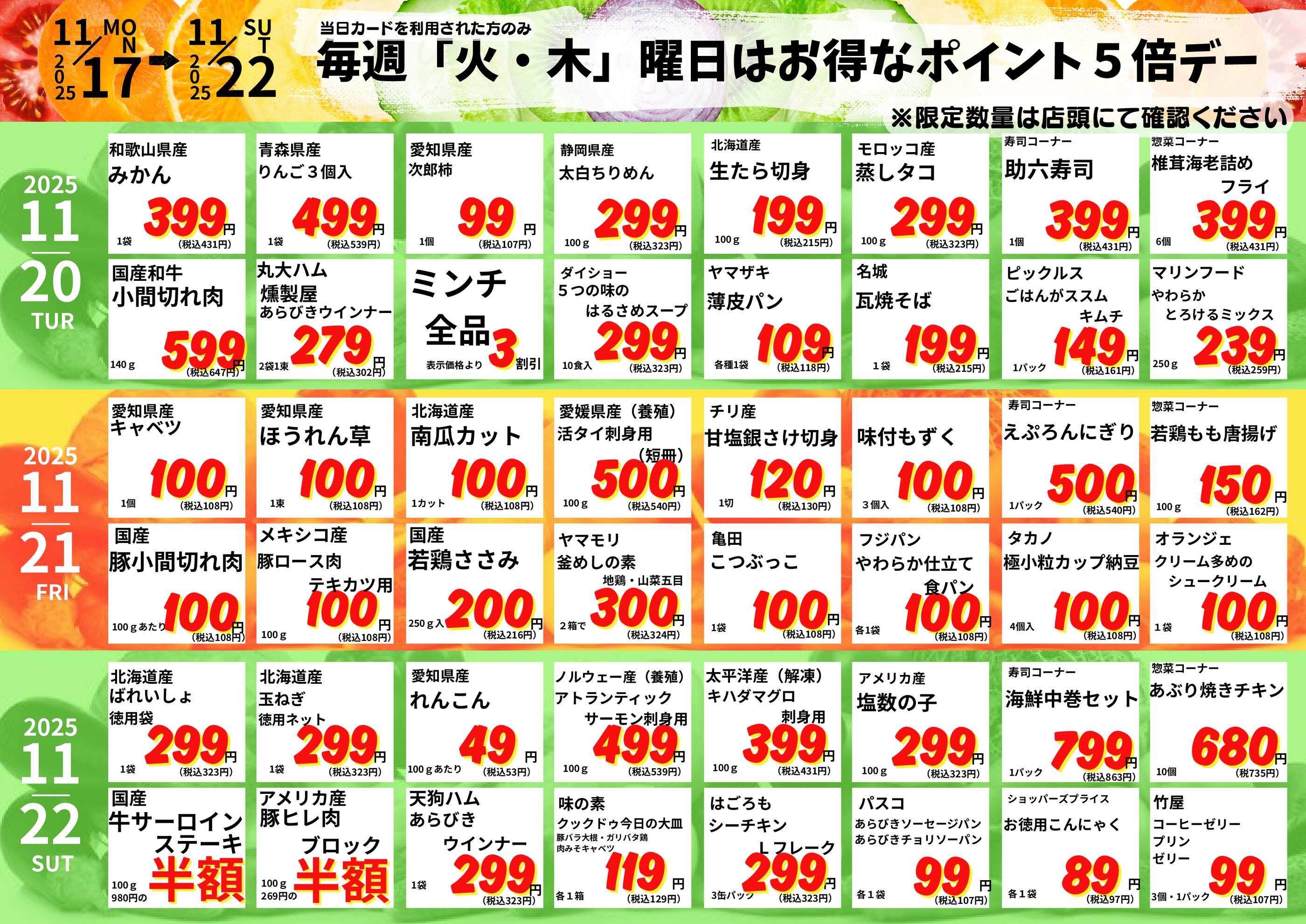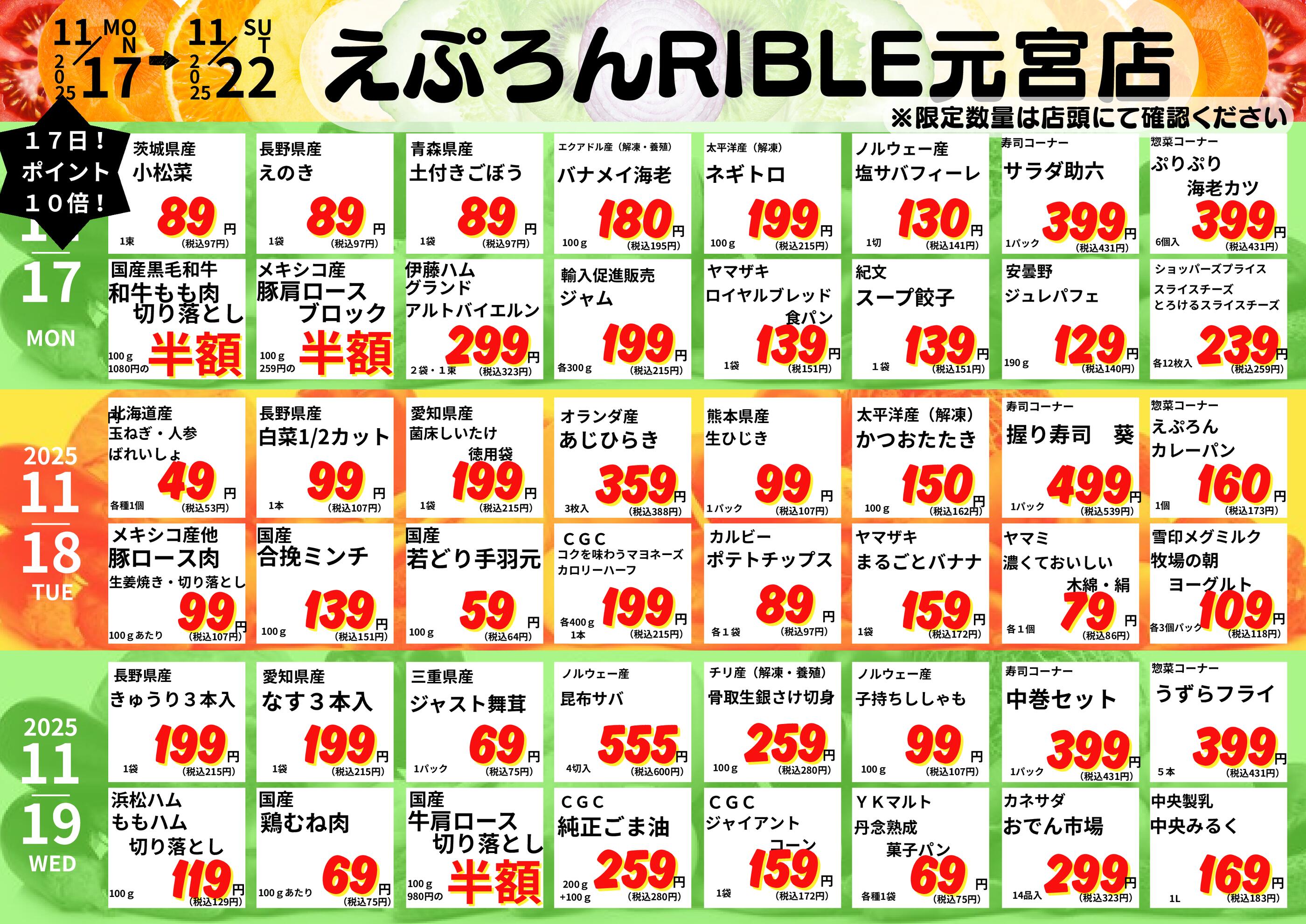 えぷろん生鮮館リブレ元宮店今週のチラシ(2025年11月10日〜11月16日)