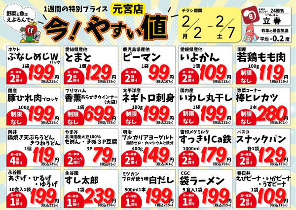 特売やセール情報など最新のチラシを掲載中。(2種類、2枚のチラシを掲載しています)
