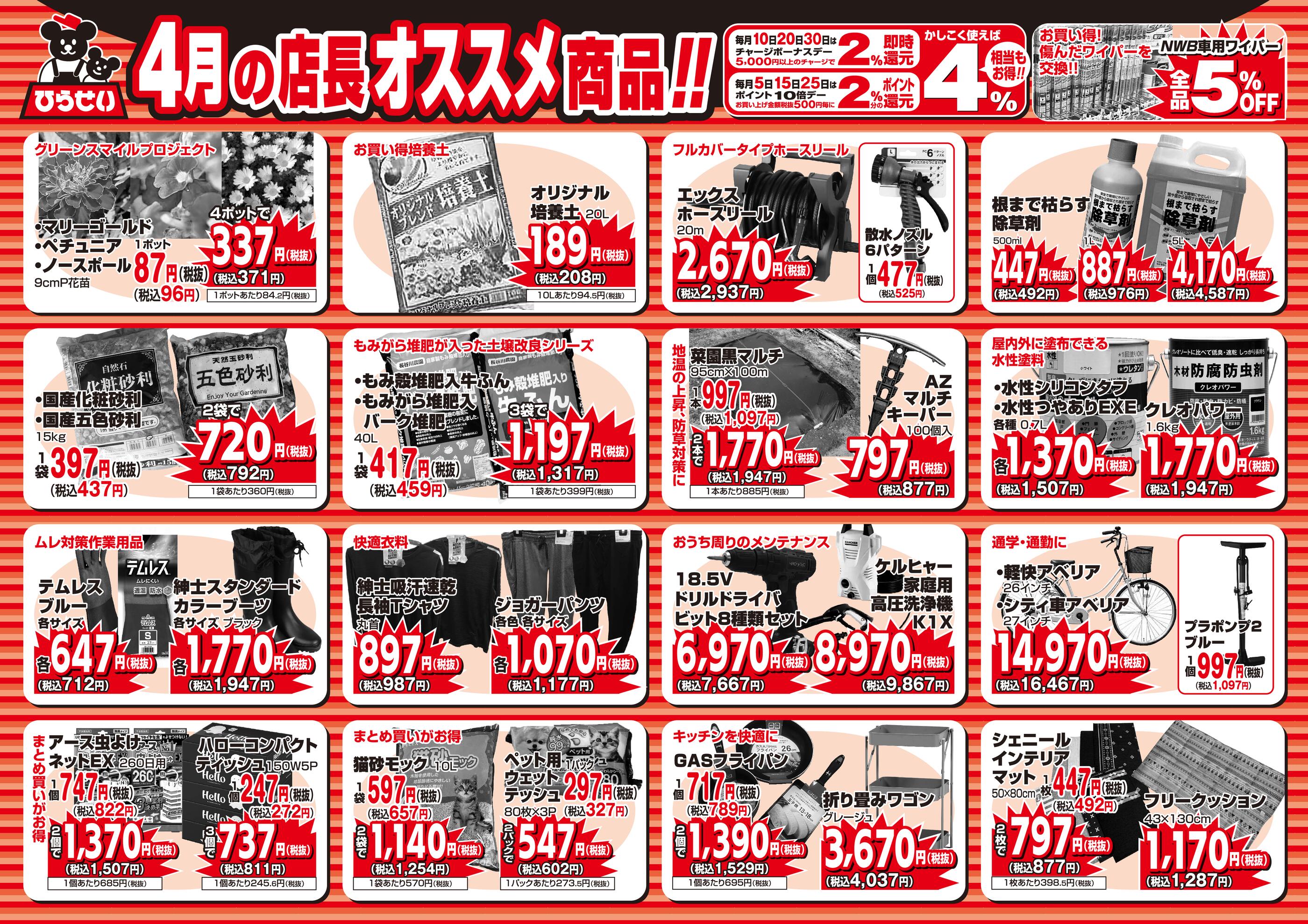 ひらせいホームセンター新井店今週のチラシ(2026年3月30日〜4月5日)