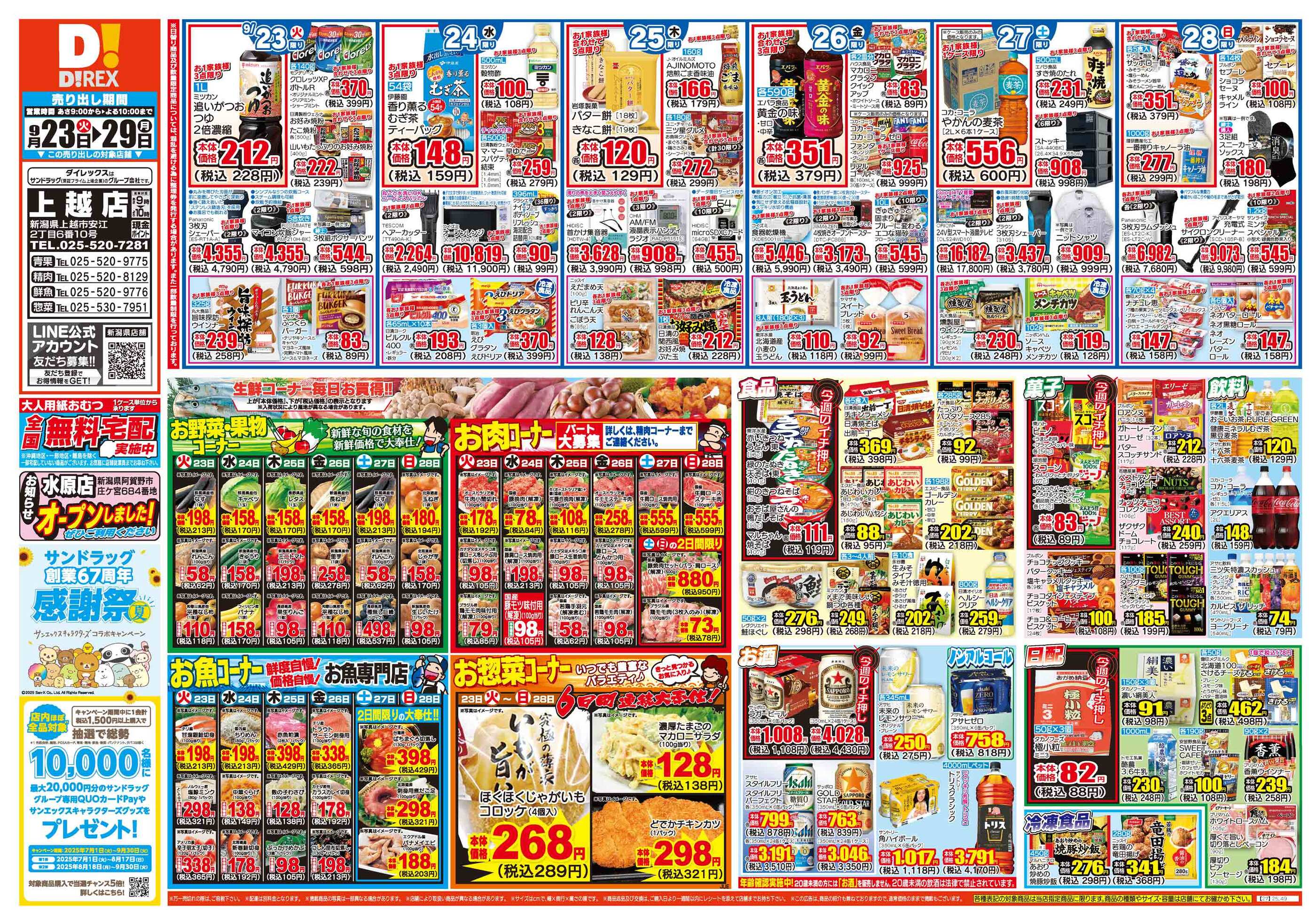 ダイレックス上越店今週のチラシ(2025年9月29日〜10月5日)