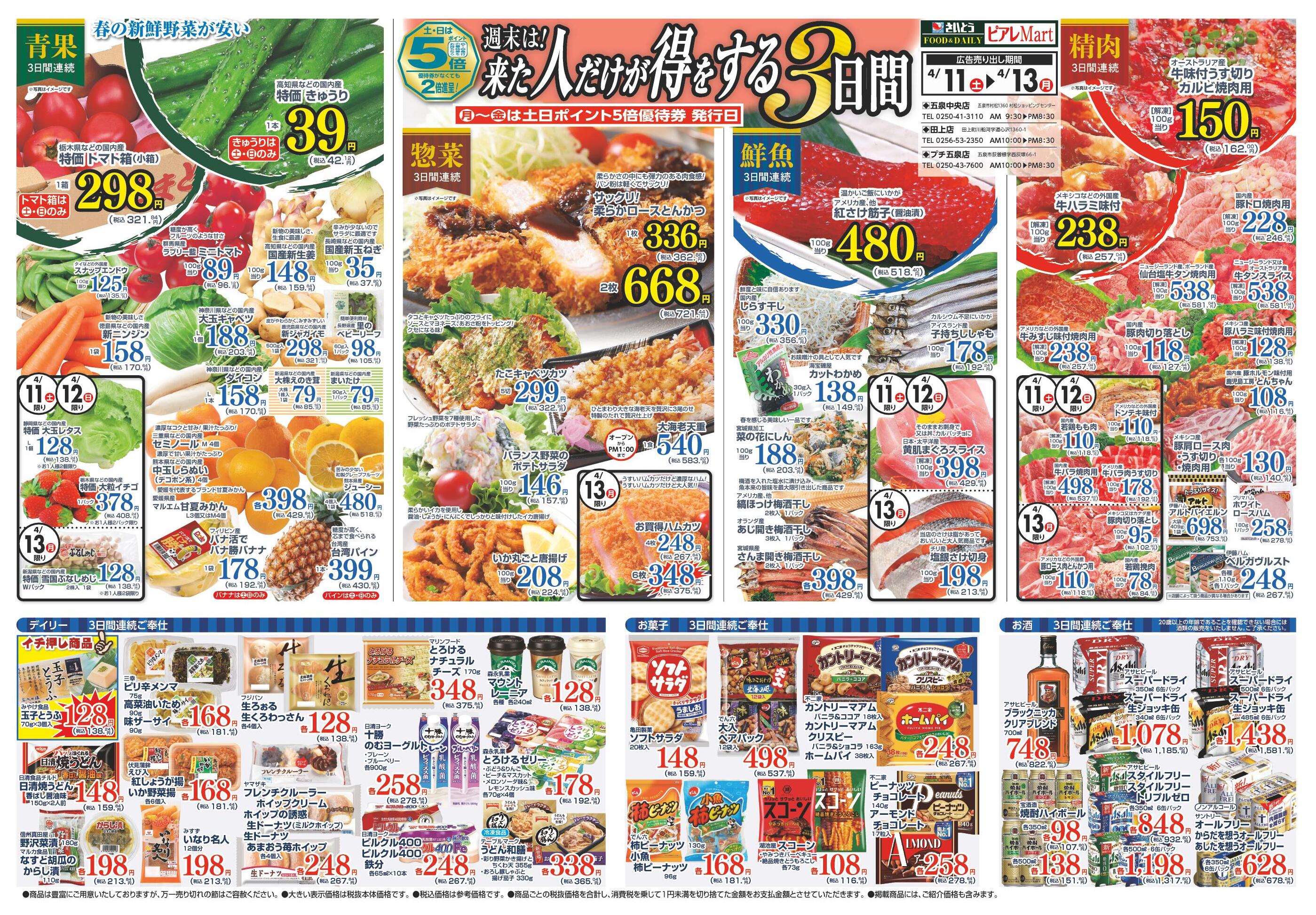 ピアレマート田上店今週のチラシ(2026年4月6日〜4月12日)