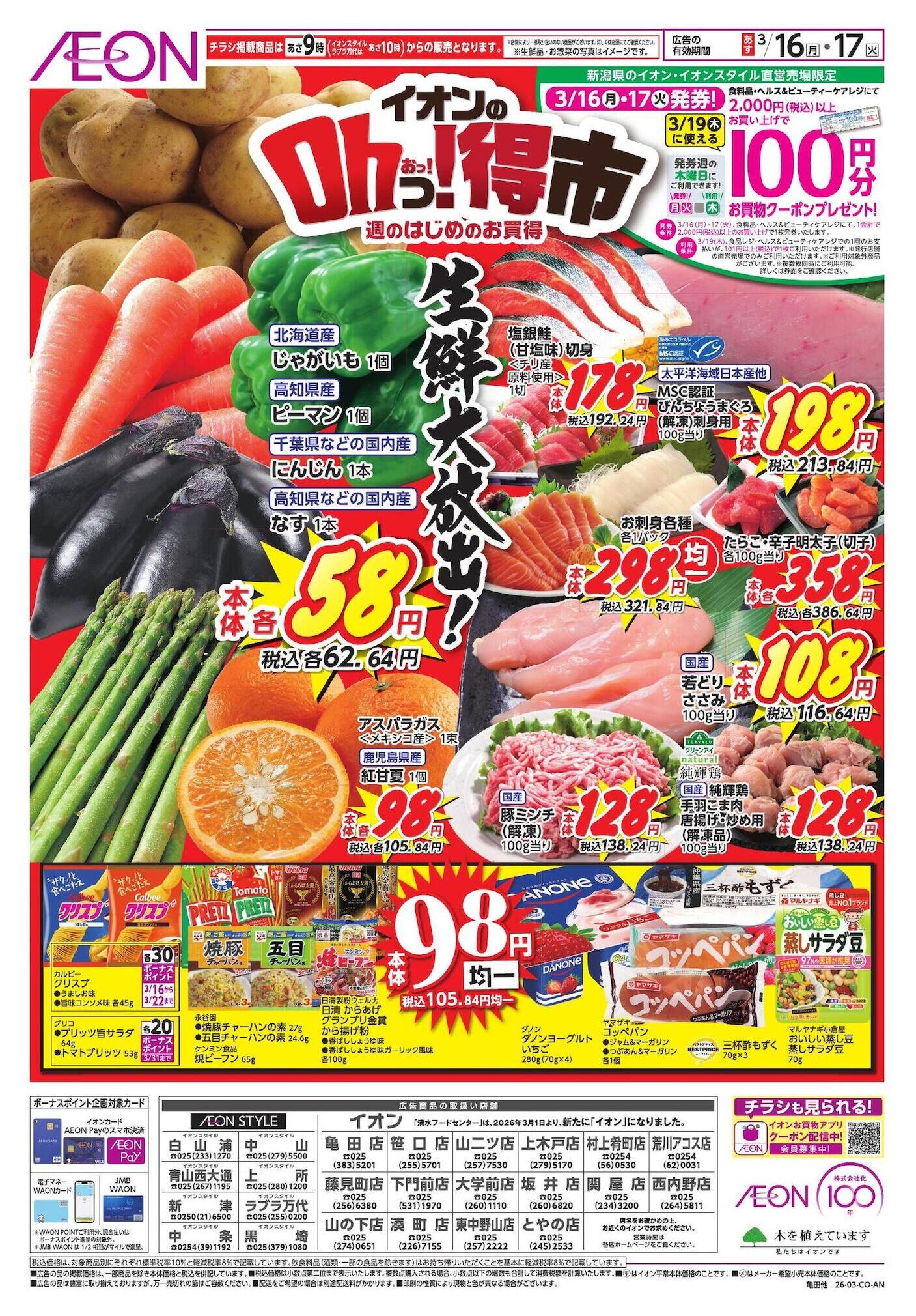 イオン関屋店今週のチラシ(2026年3月16日〜3月22日)