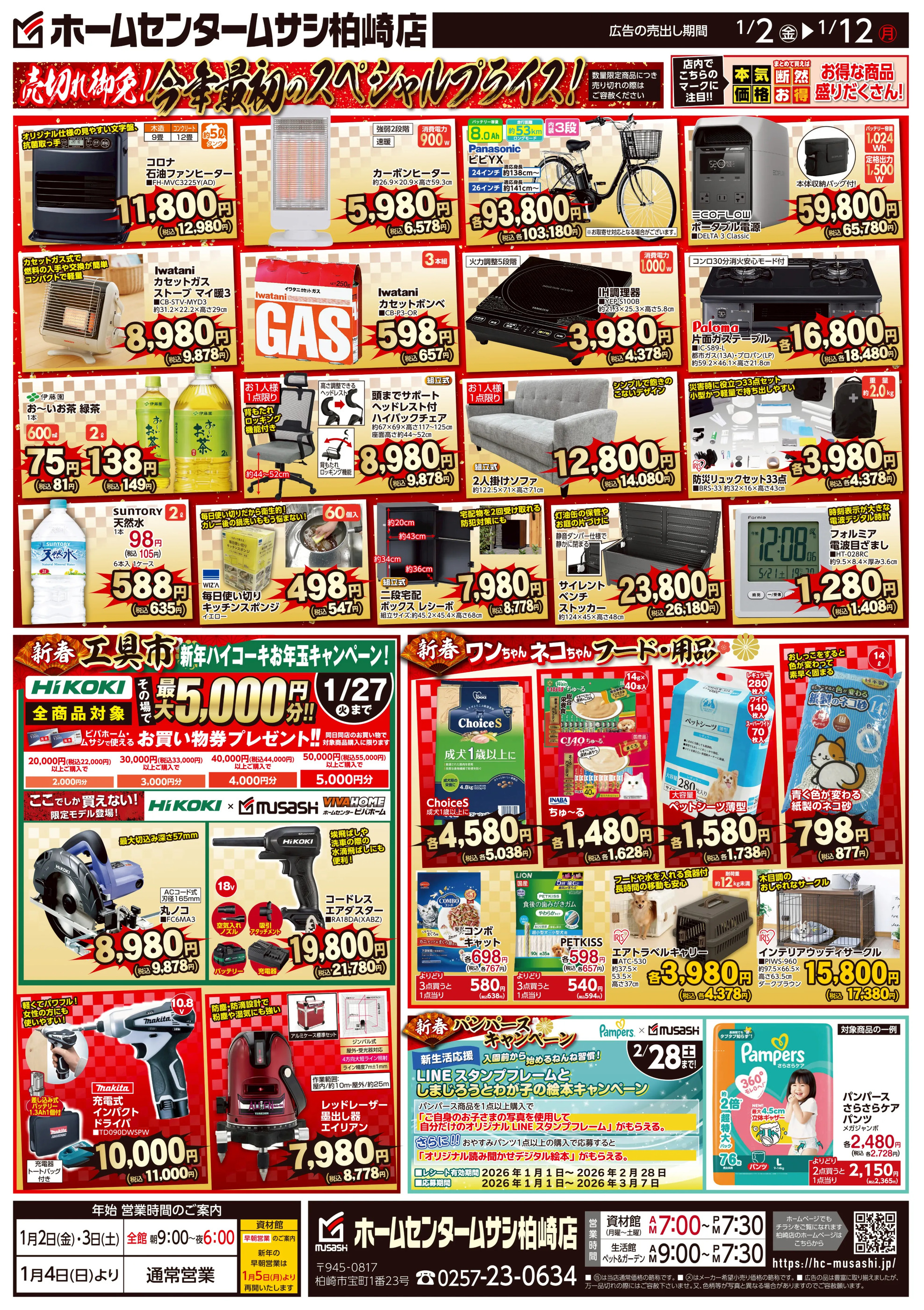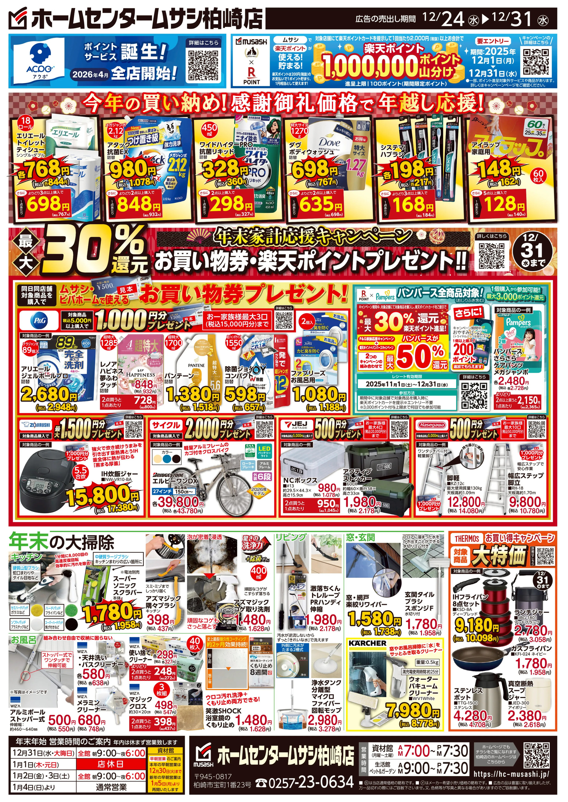 ホームセンタームサシ柏崎店今週のチラシ(2025年12月29日〜1月4日)