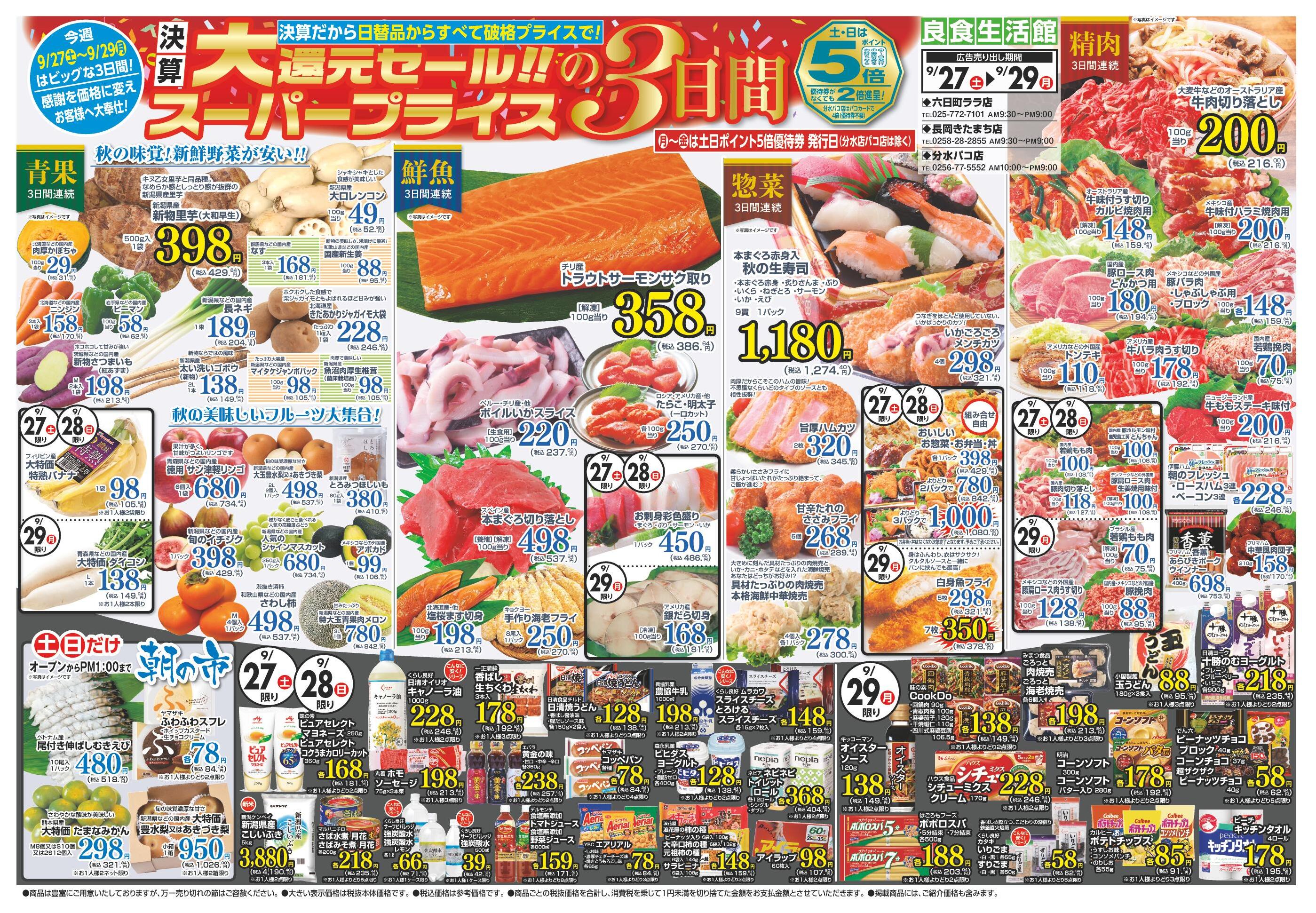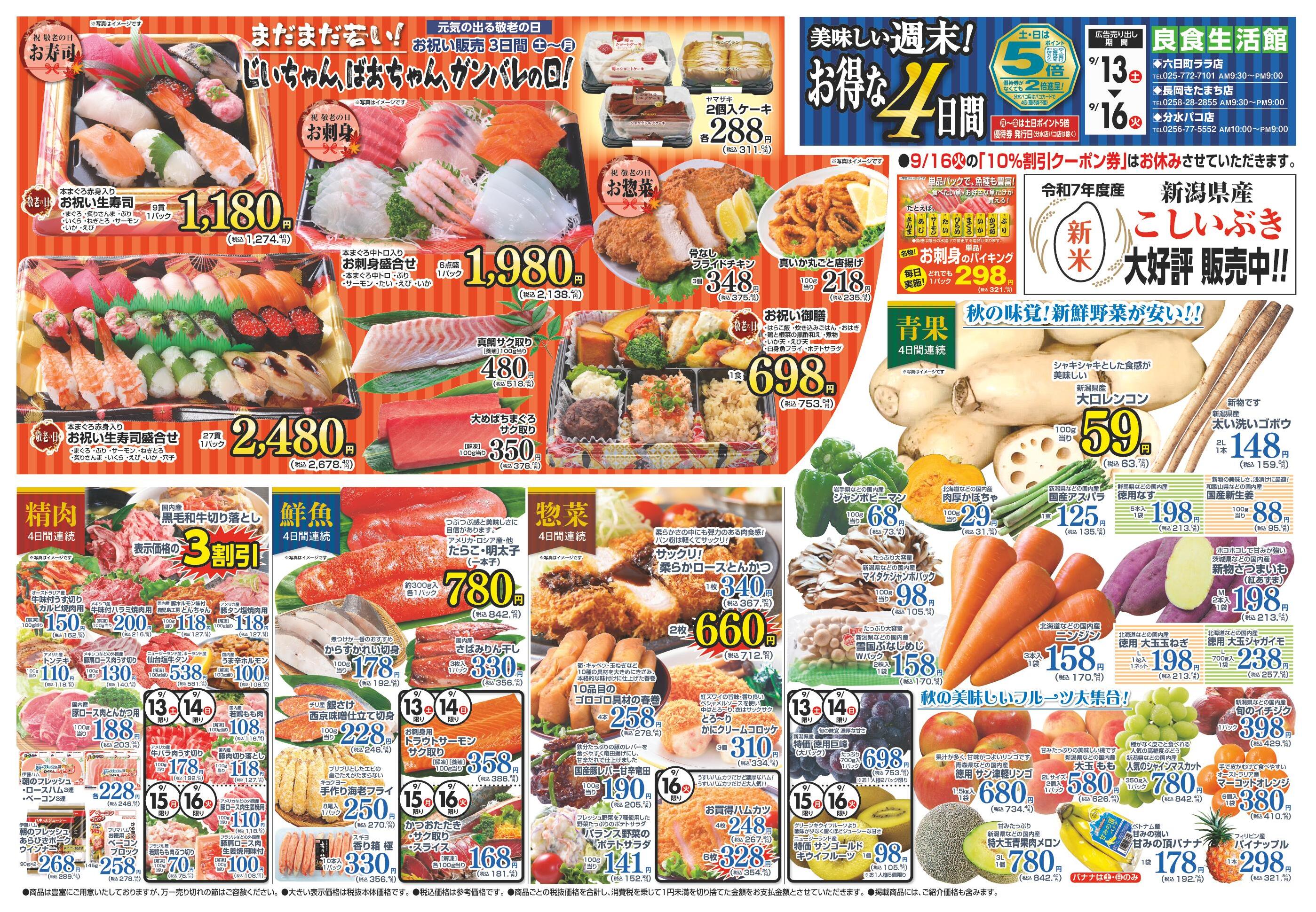 良食生活館分水パコ店今週のチラシ(2025年9月29日〜10月5日)