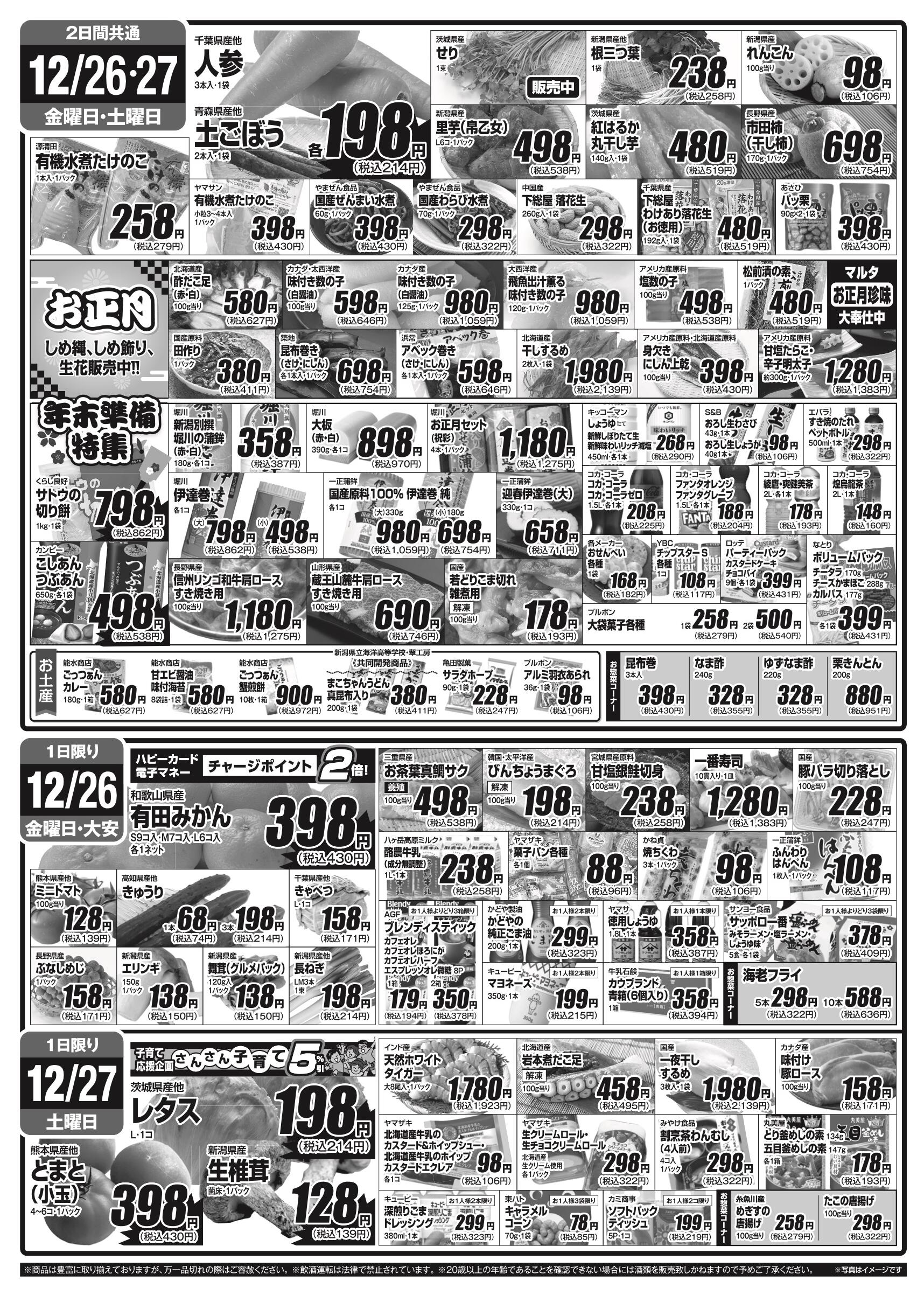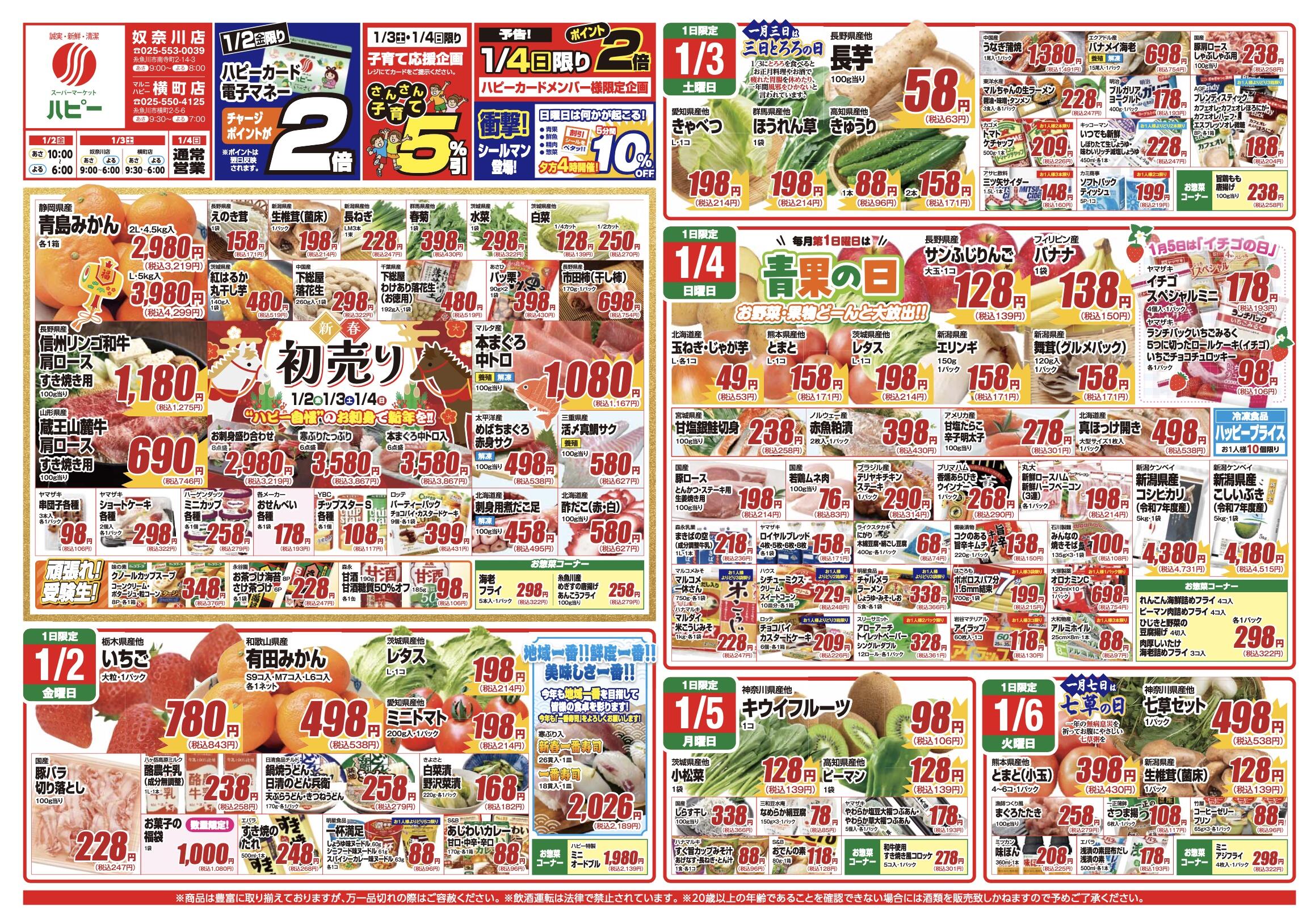 ハピー田沢店今週のチラシ(2025年12月29日〜1月4日)
