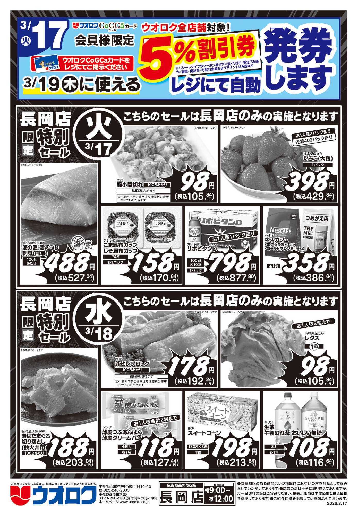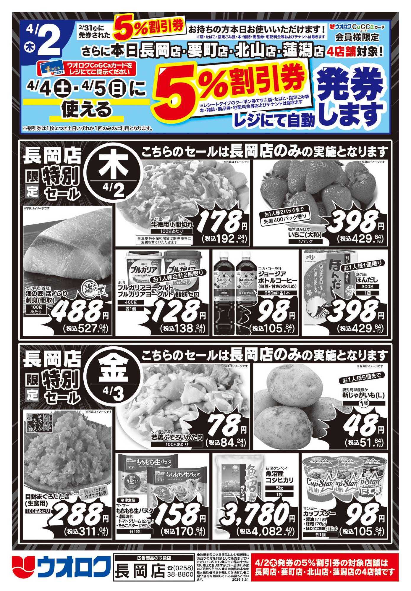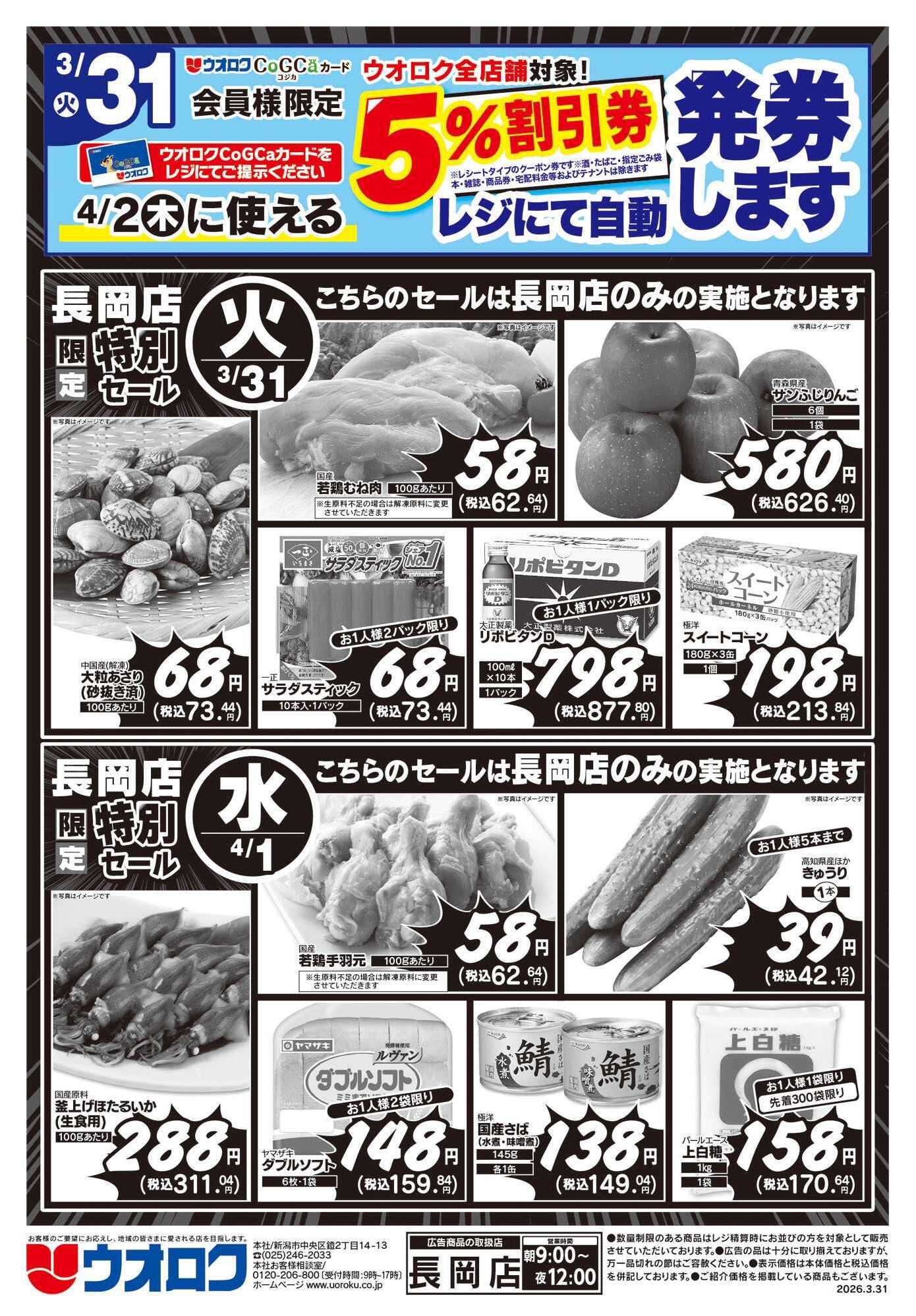 ウオロク長岡店今週のチラシ(2026年3月30日〜4月5日)