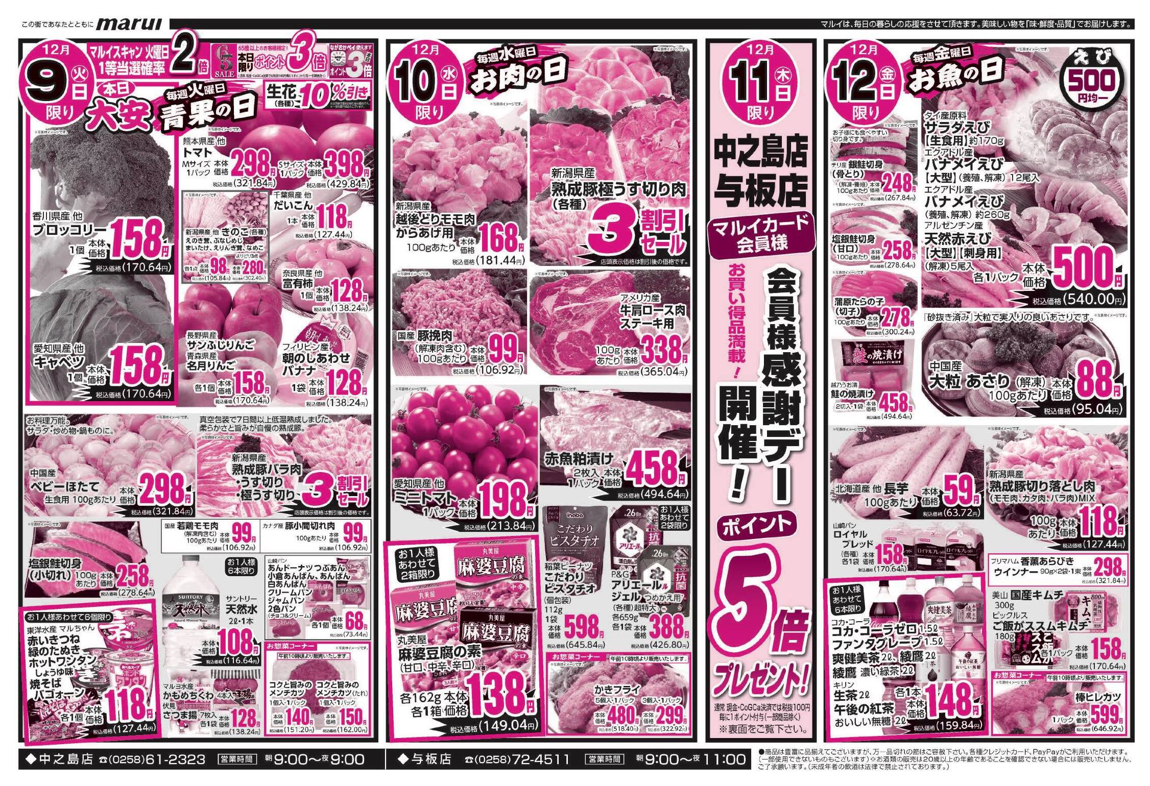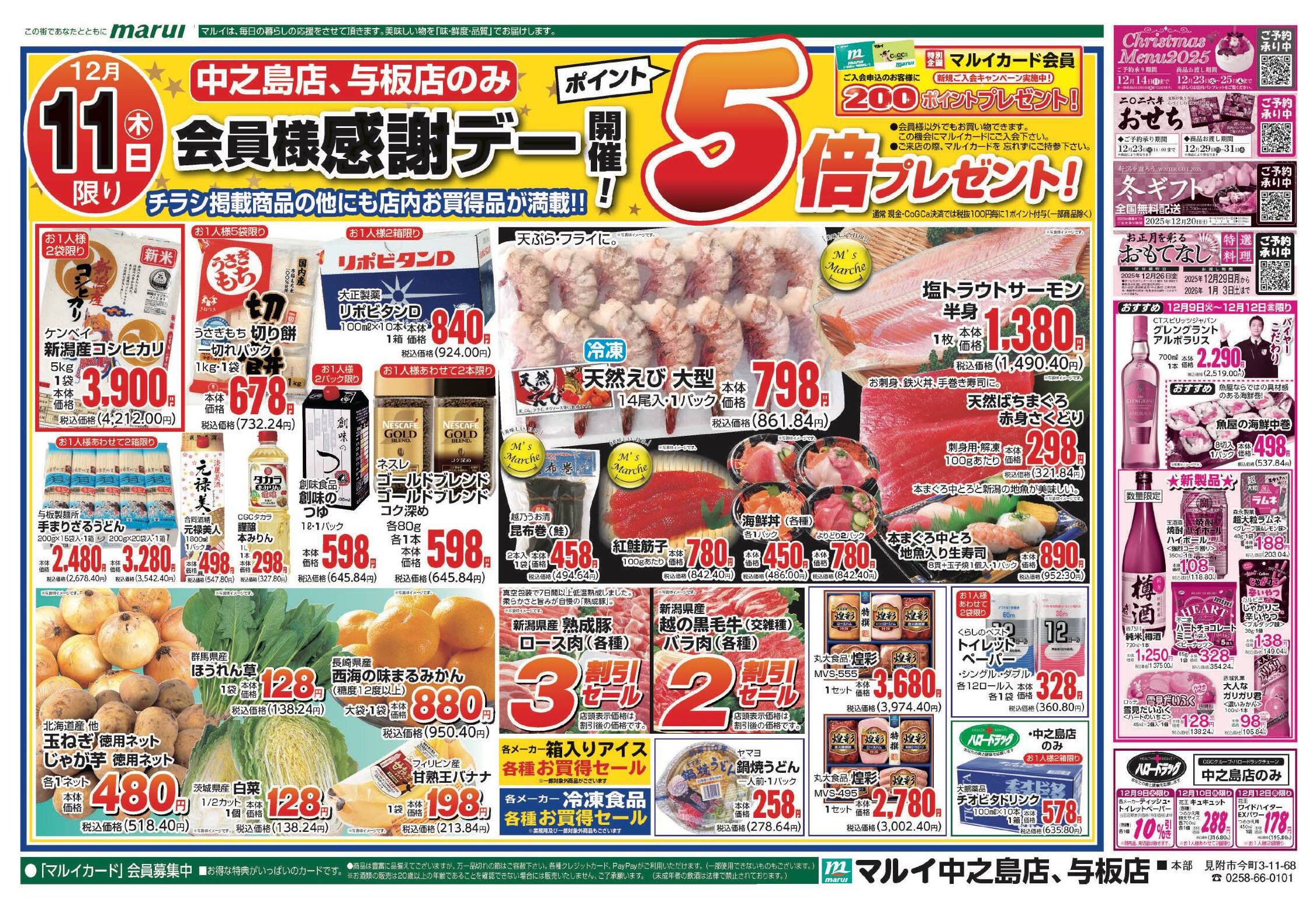 スーパーマルイ与板店今週のチラシ(2025年12月8日〜12月14日)