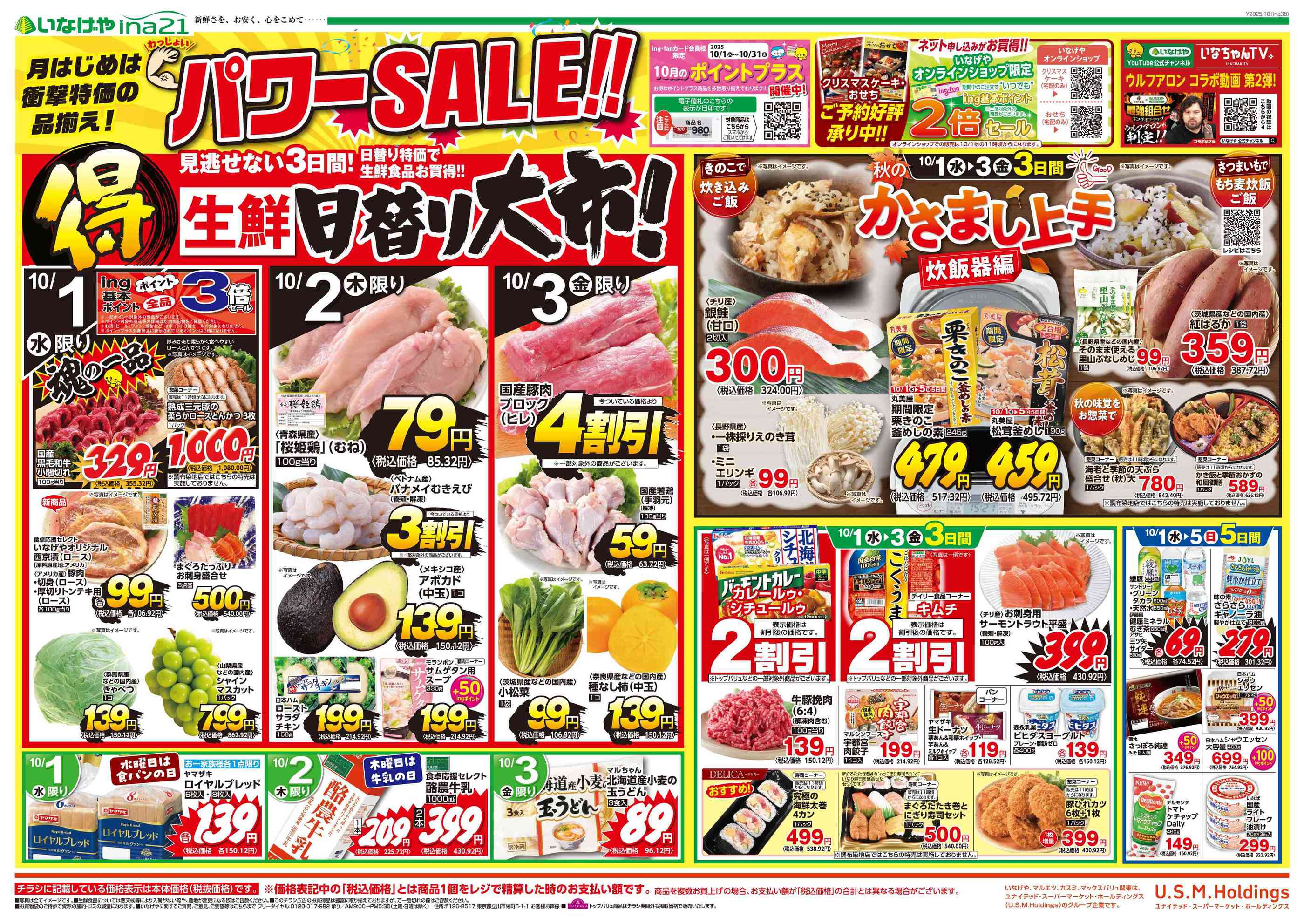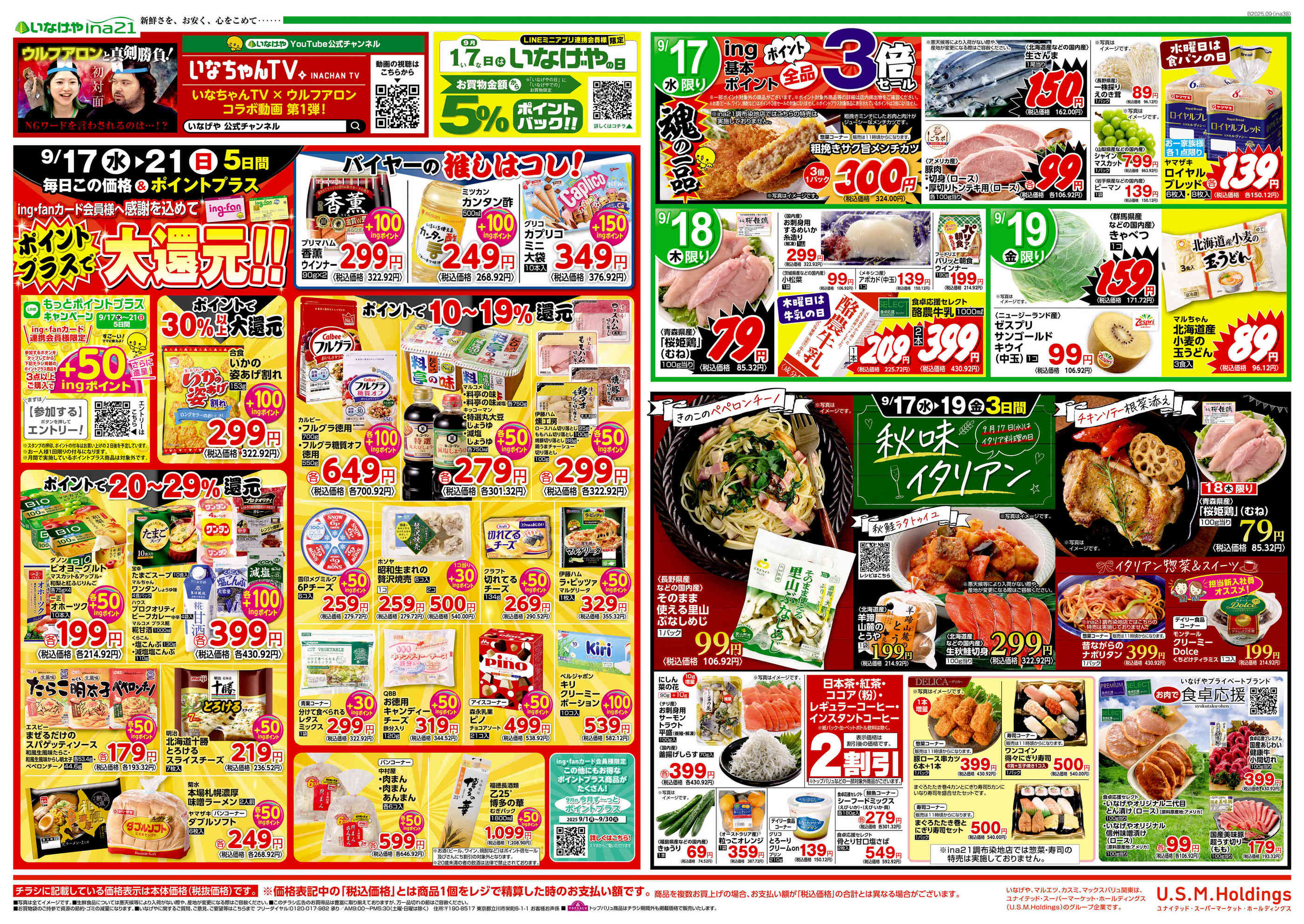 いなげやina21五日市店今週のチラシ(2025年9月29日〜10月5日)