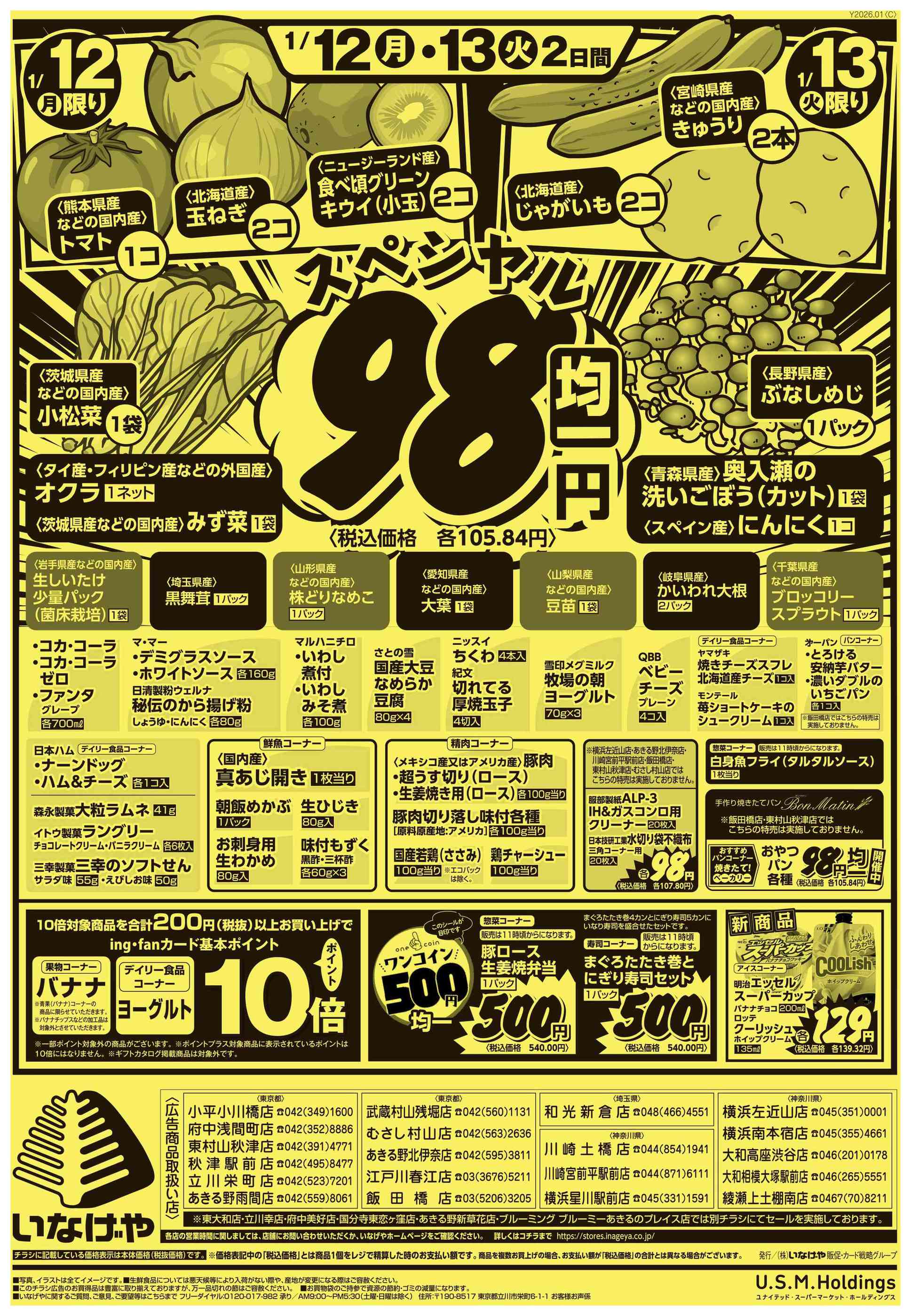 いなげやあきる野北伊奈店今週のチラシ(2026年1月12日〜1月18日)