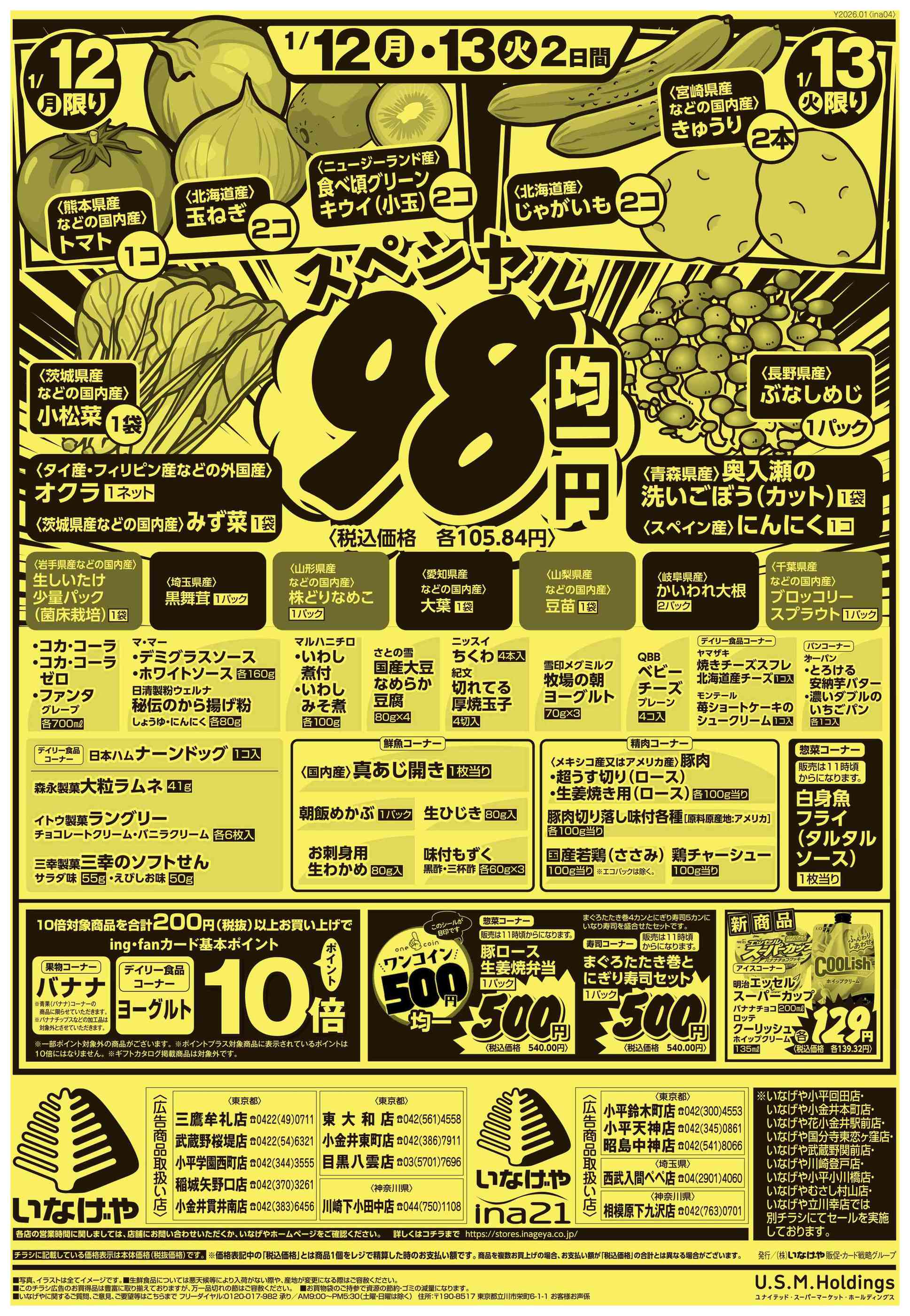いなげや三鷹牟礼店今週のチラシ(2026年1月12日〜1月18日)