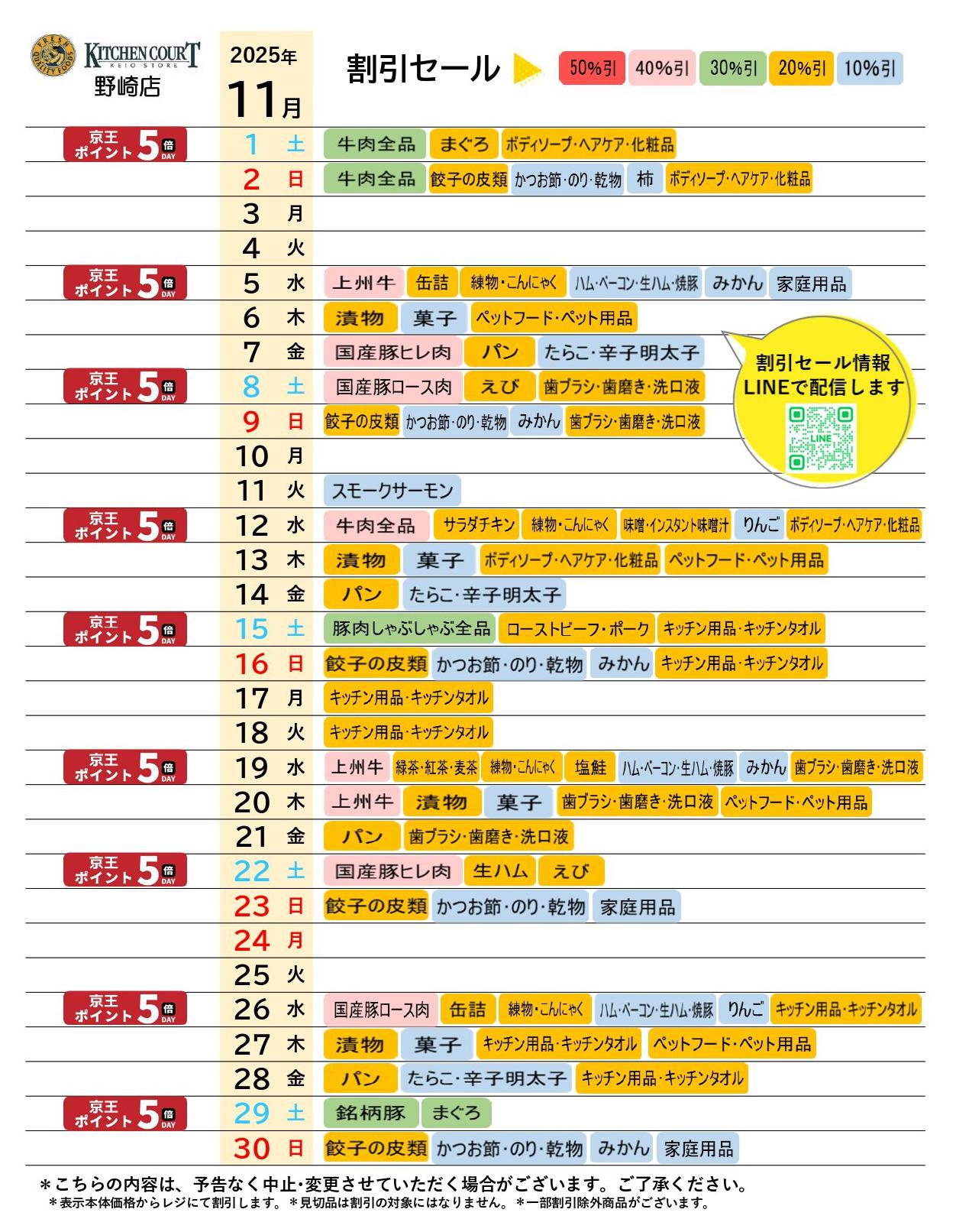 キッチンコート野崎店今週のチラシ(2025年11月10日〜11月16日)