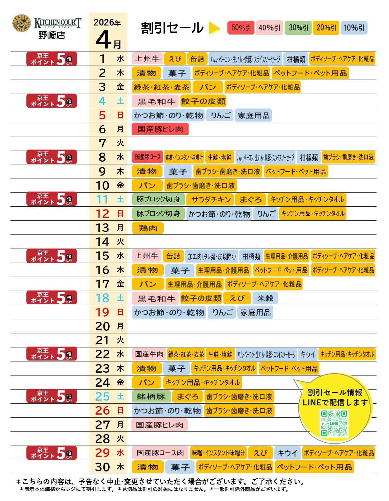 キッチンコート野崎店今週のチラシ(2026年3月30日〜4月5日)