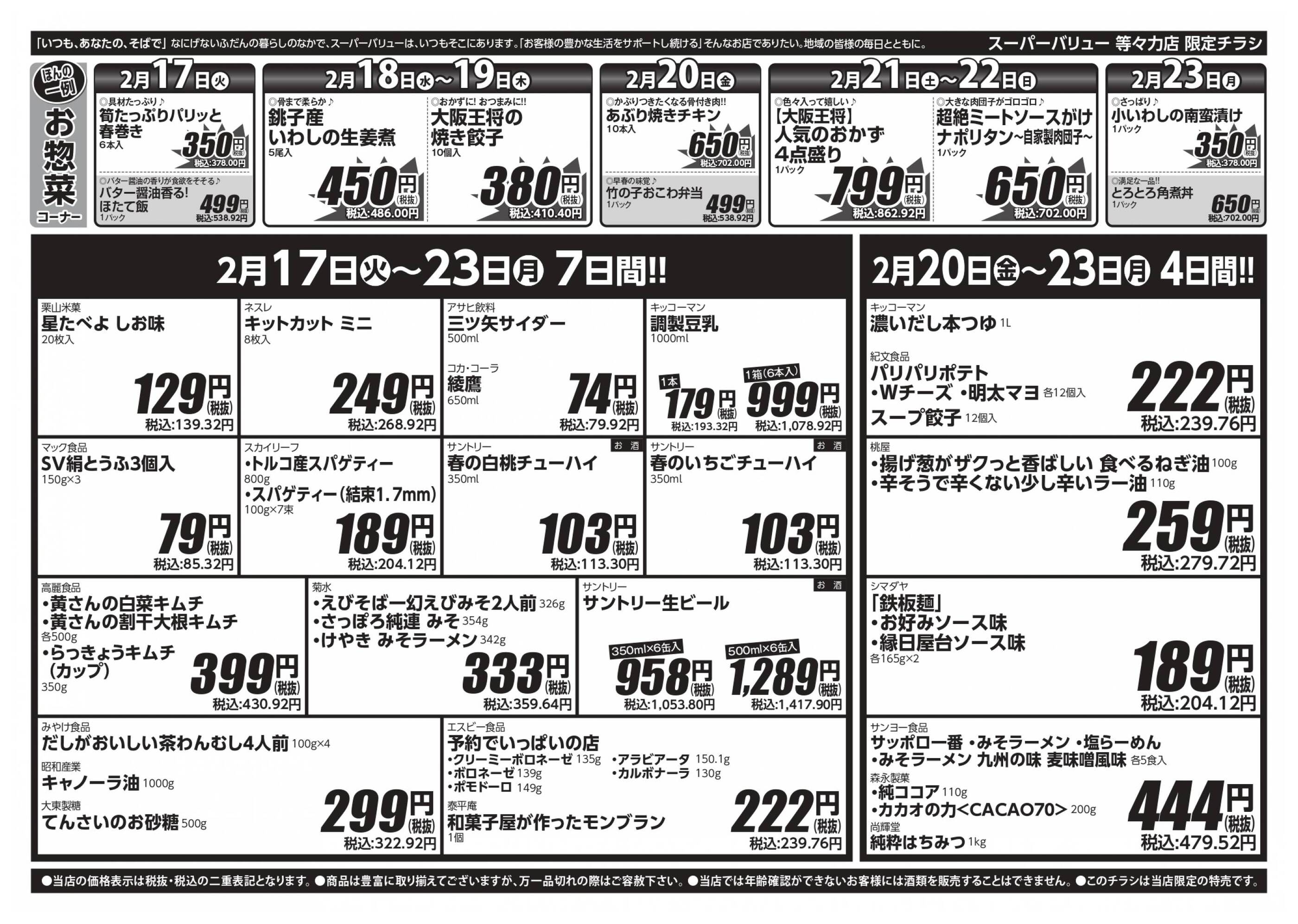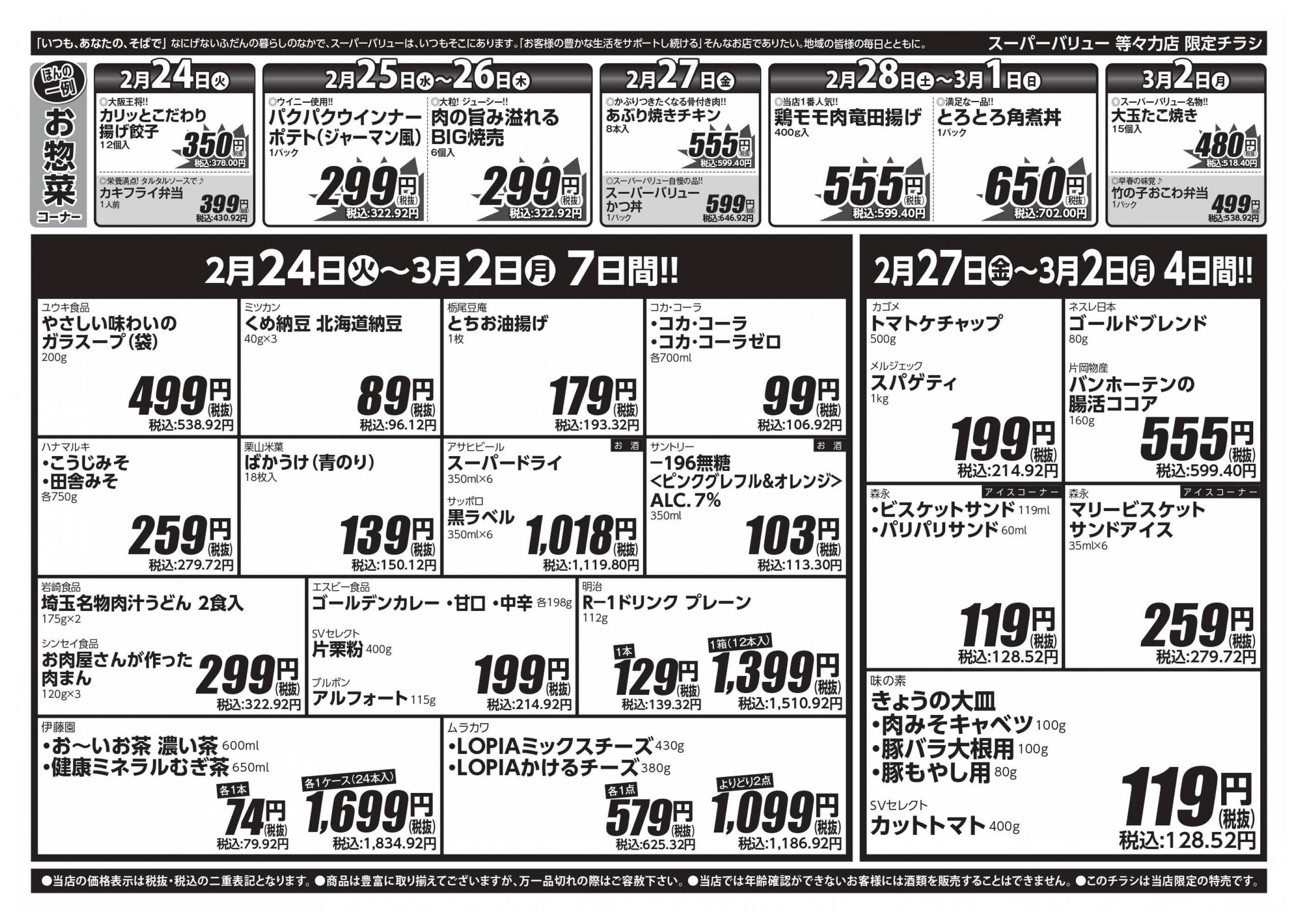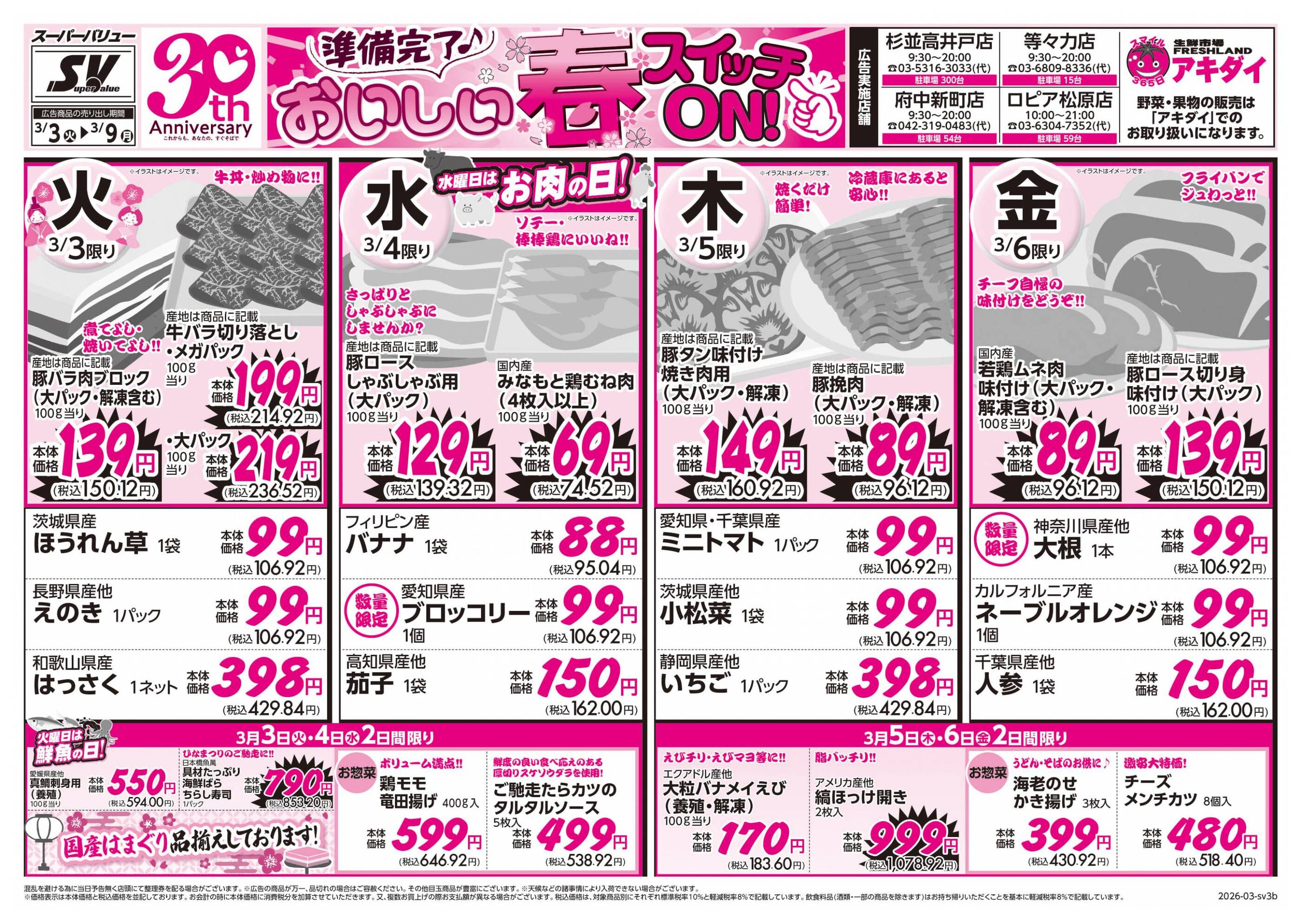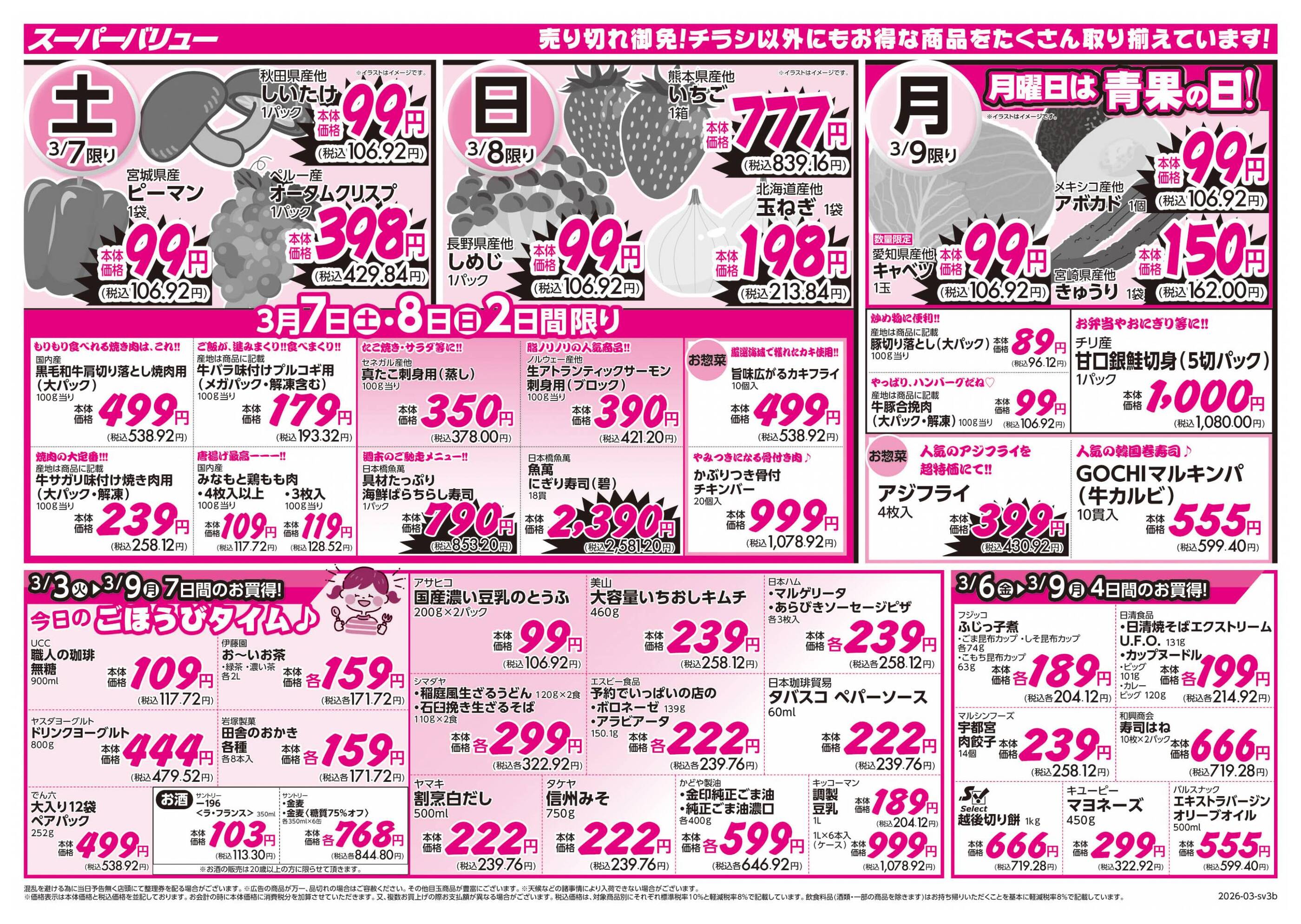 スーパーバリュー等々力店今週のチラシ(2026年3月2日〜3月8日)